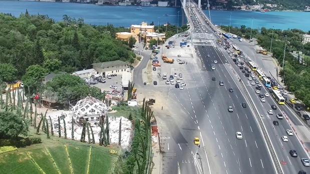 15 Temmuz Şehitler Köprüsü'nün Anadolu Yakası çıkışında yapımına başlanan eşkenar beşgen mimariye sahip anıtta çalışmaların yüzde 95'i tamamlandı.