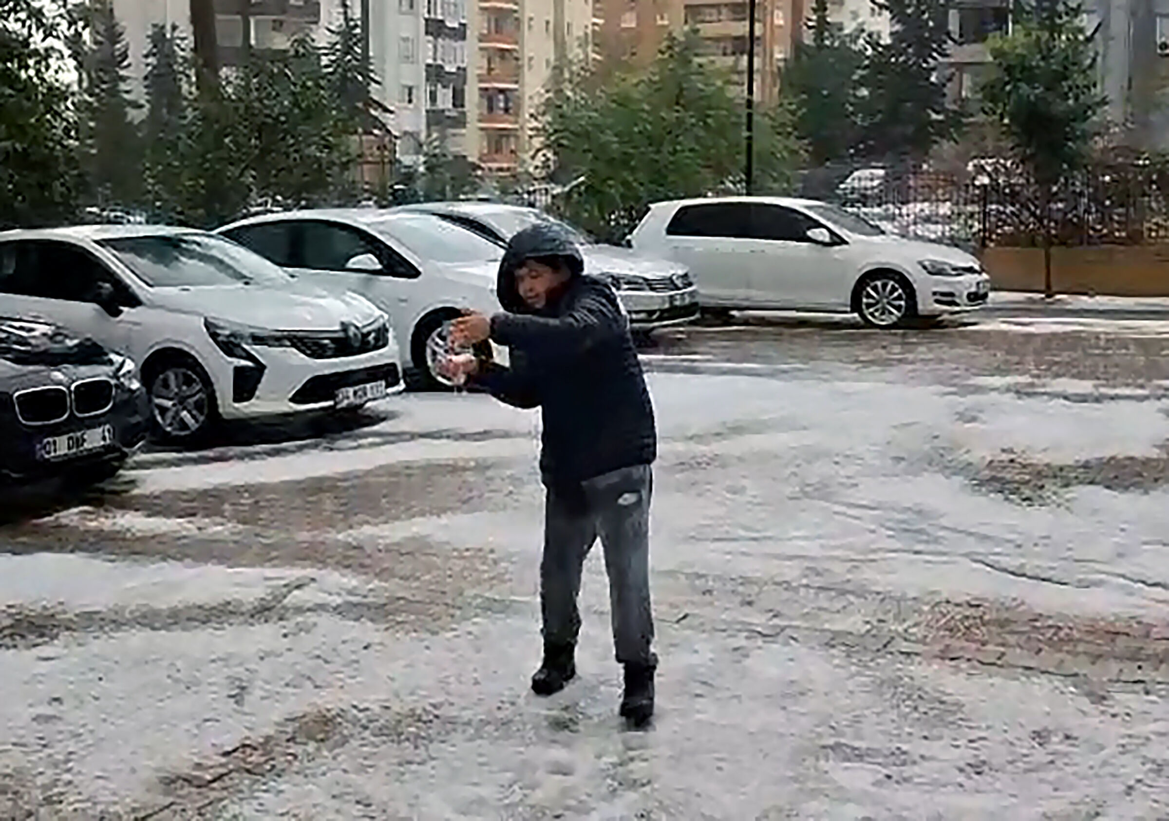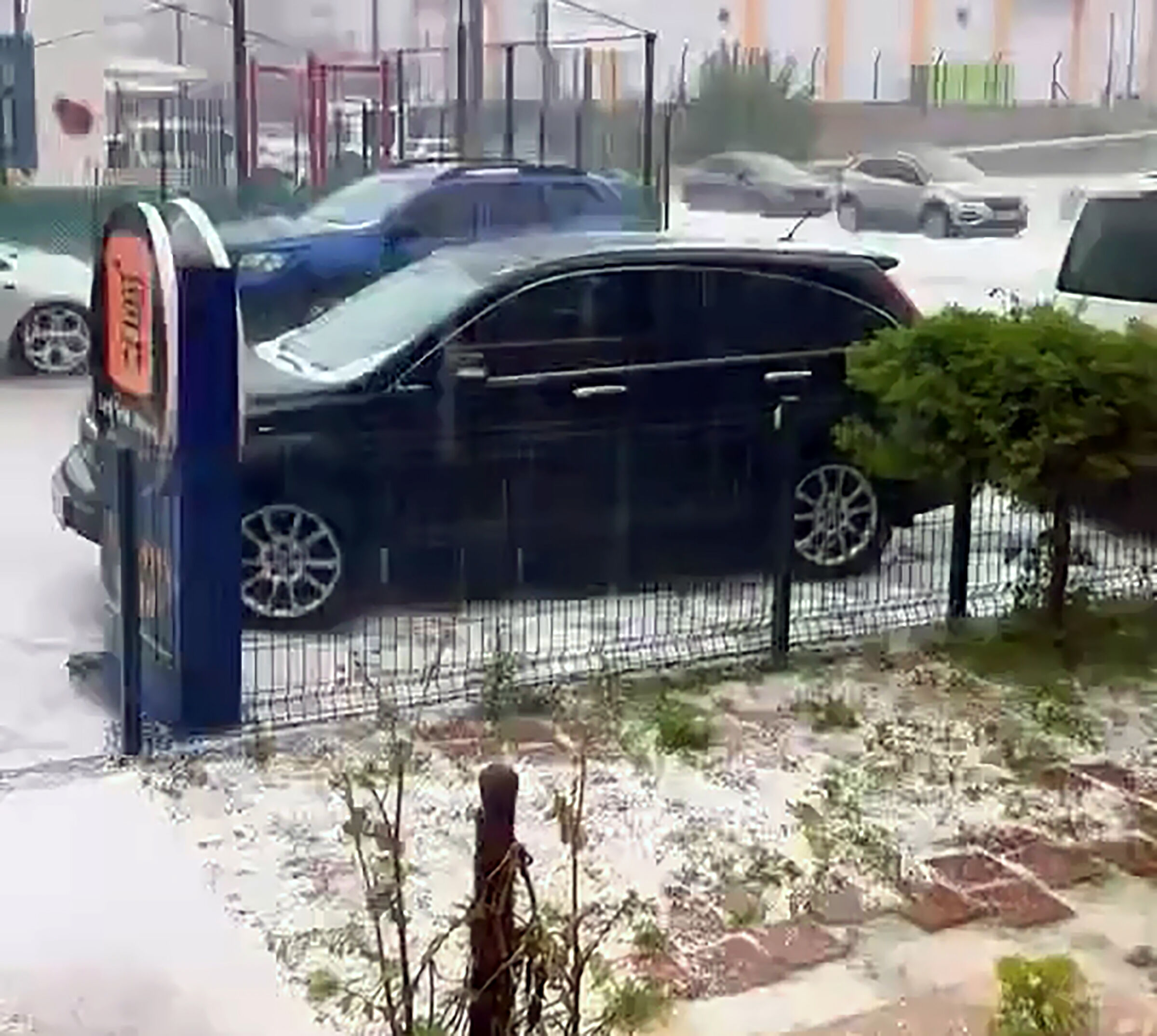 Meteoroloji Genel Müdürlüğü’nün ‘sarı’ kodlu uyarıda bulunduğu kentte aniden başlayan sağanak, ardından dolu yağışına dönüştü. Şiddetli dolu yağışı sonrası cadde ve sokaklar beyaza büründü.