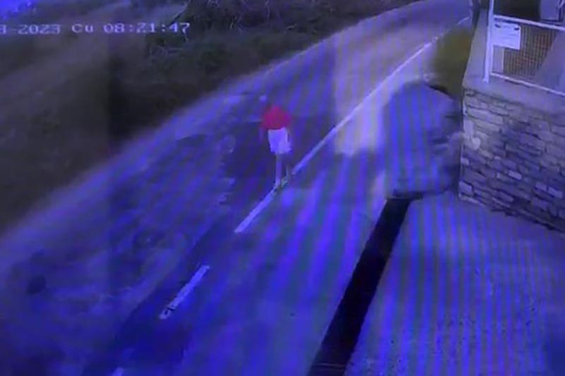 Öte yandan, yaşlı kadının üzerinde beyaz şort ve turuncu gömlekli şekilde bir iş yerinin önünden geçtiği anlar güvenlik kamerasına yansıdı.