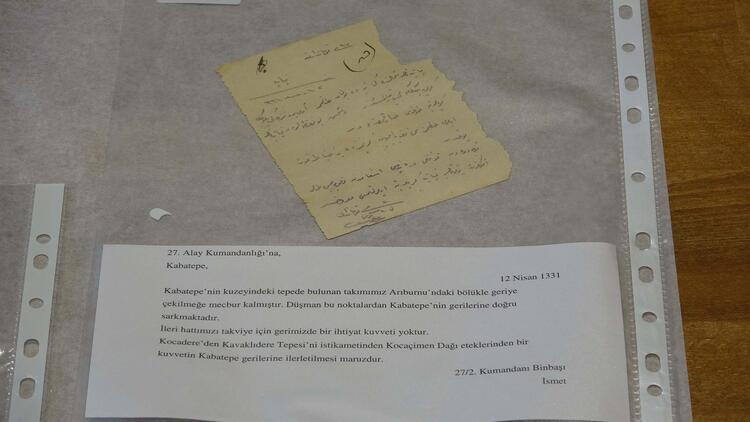 Çanakkale Kara Savaşları'nın 108'inci yıl dönümü hazırlıkları devam ediyor. Çanakkale Savaşları Araştırma Merkezi'nde ise Çanakkale Savaşları'na ait birçok özel belge, arşiv, koleksiyon kitaplar yer alıyor. Bu belgelerin arasında ise 25 Nisan 1915 tarihinde Anzak askerleri tarafından sabaha karşı Gelibolu Yarımadası'na yapılan çıkarmanın 27'nci Alay'ın 2'nci Tabur Komutanı Binbaşı İsmet Bey'in, 27'nci Alay Komutanlığı'na yazdığı raporlar da bulunuyor.
