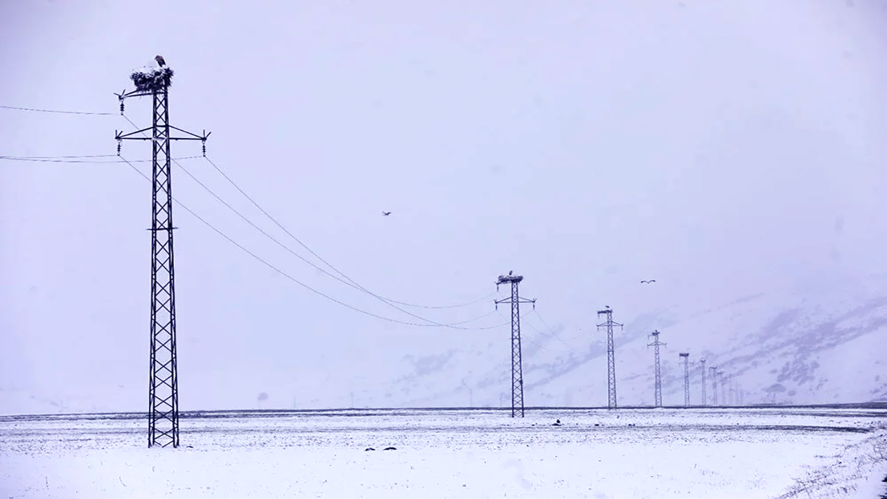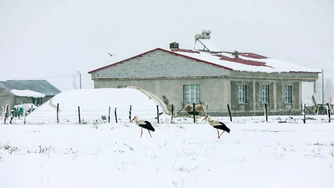 Muş'ta yağan kar nedeniyle leyleklerin yuvaları karla kaplandı