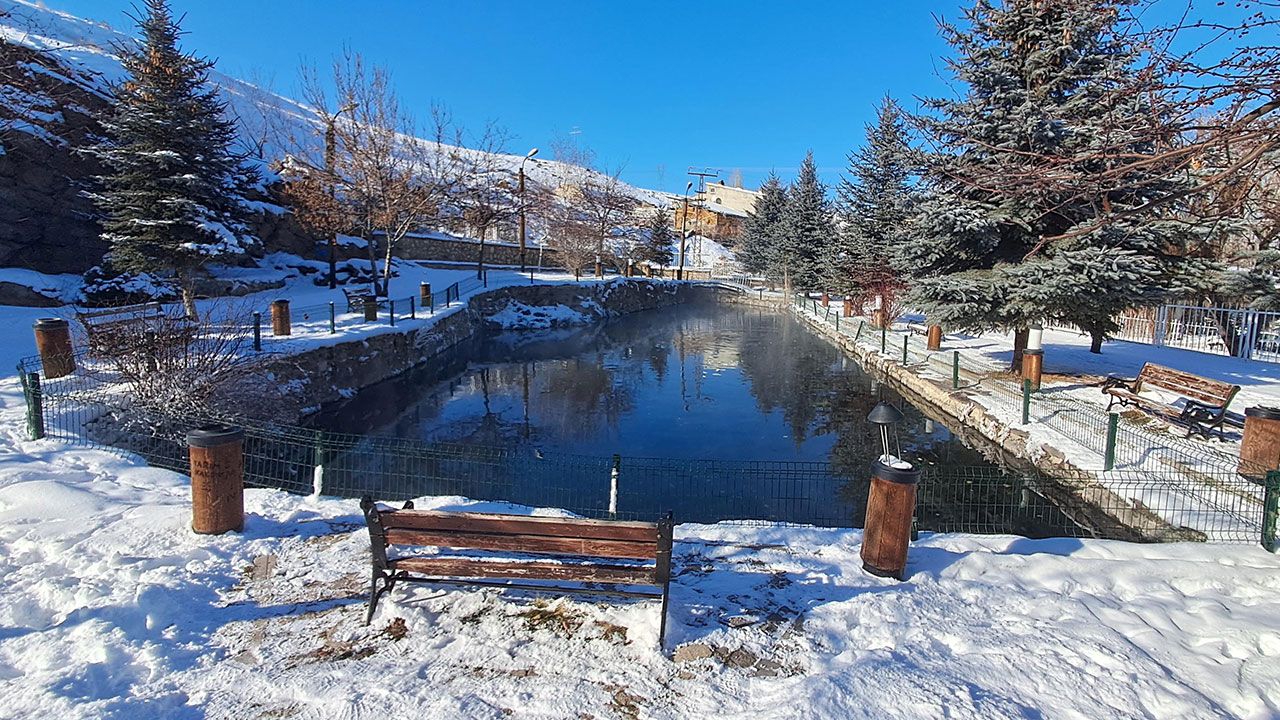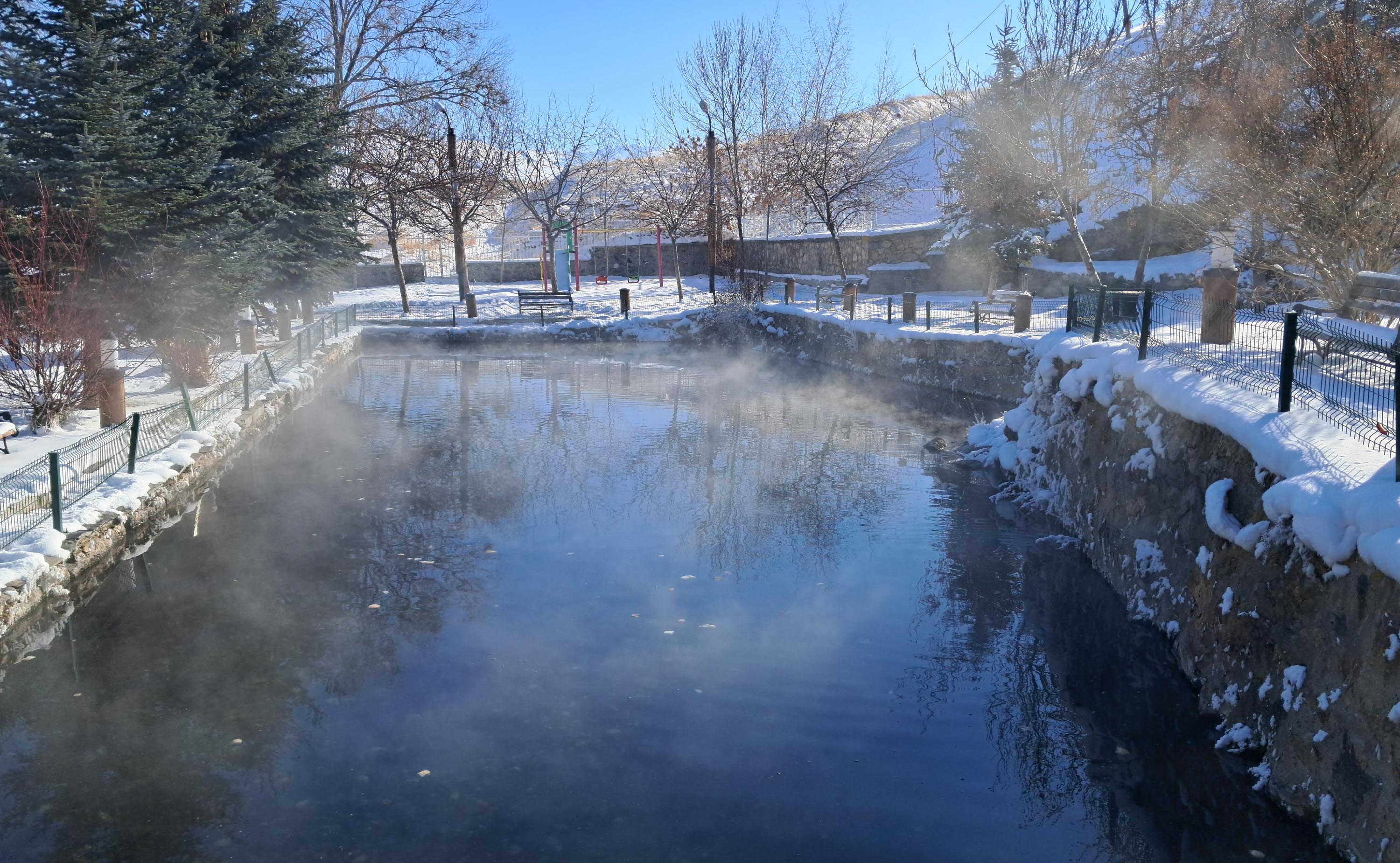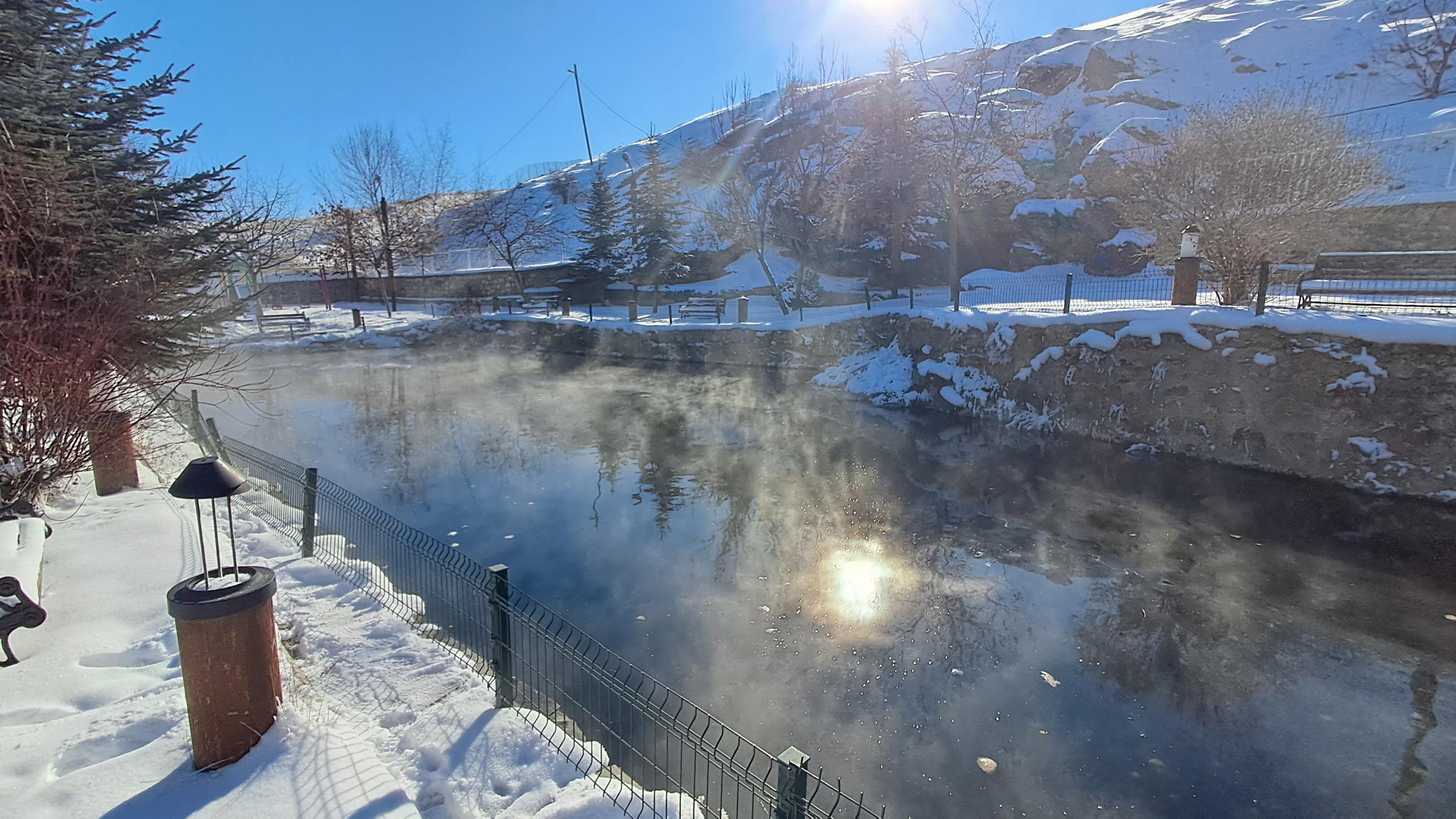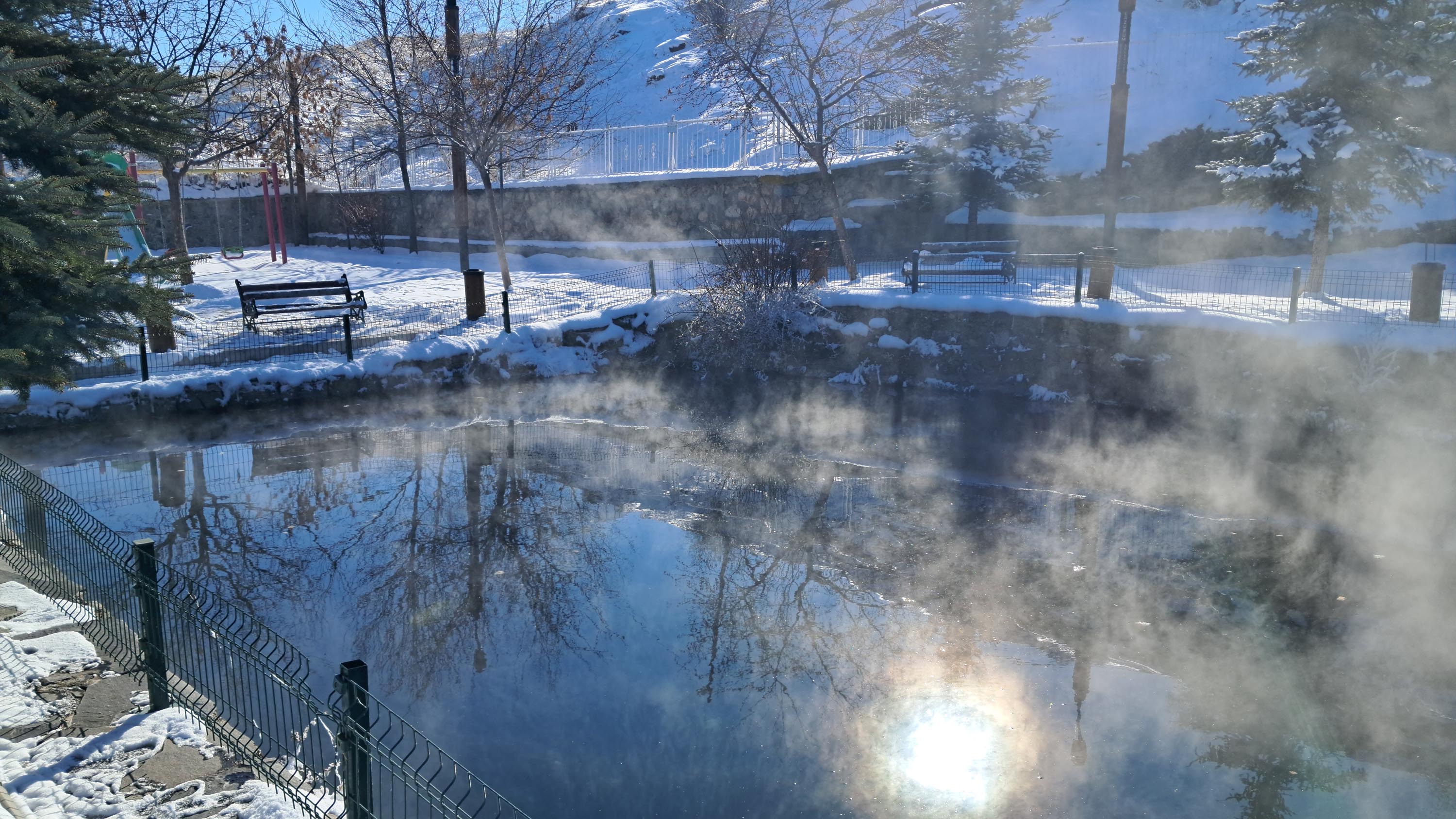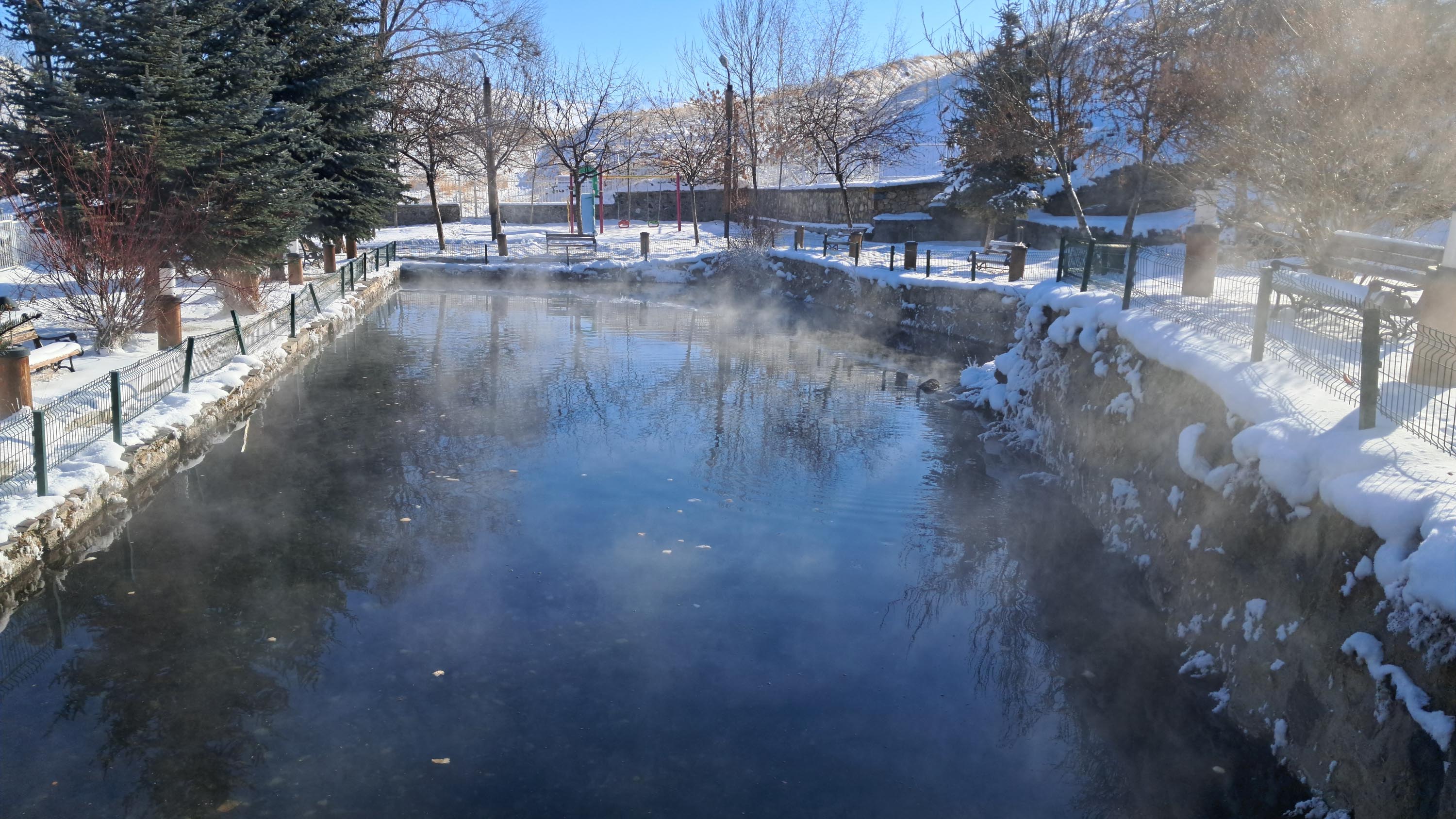 Erzurum’da etkili olan dondurucu soğuklar nedeniyle şadırvan ve göletler buz tutarken, Aziziye ilçesine bağlı kırsal Söğütlü Mahallesi’ndeki Balıklıgöl donmadı.