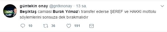 Milli futbolcu Burak Yılmaz'ın Beşiktaş'la adının geçmesi Beşiktaş taraftarını çileden çıkardı.