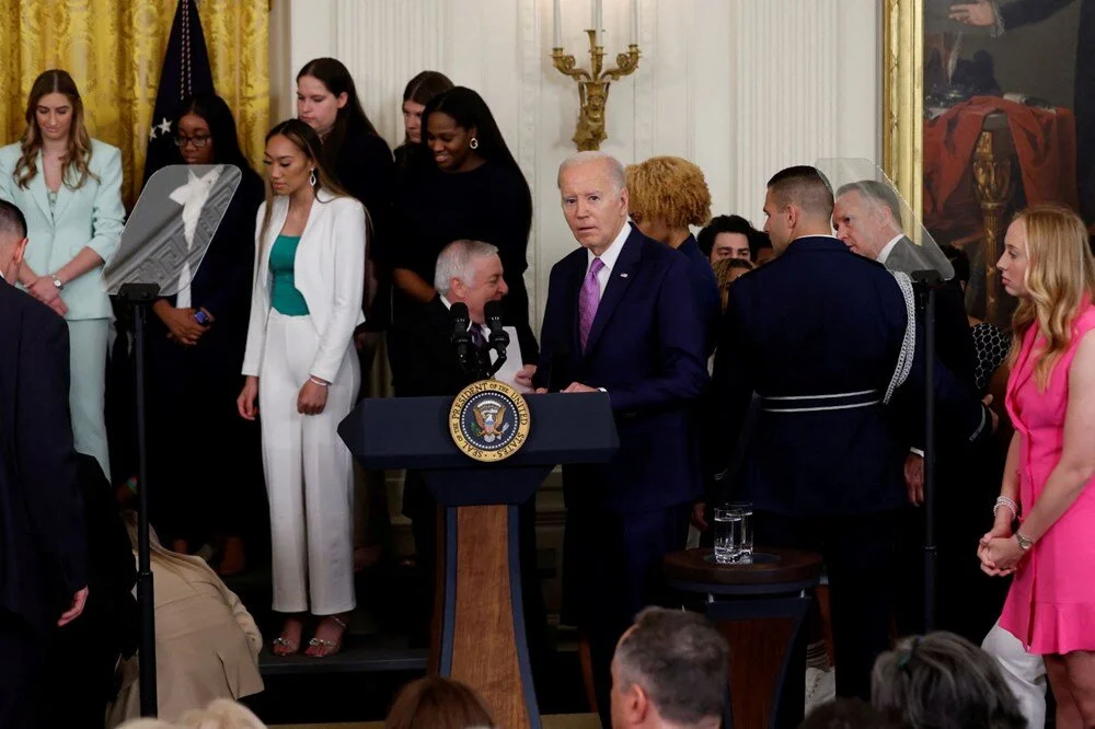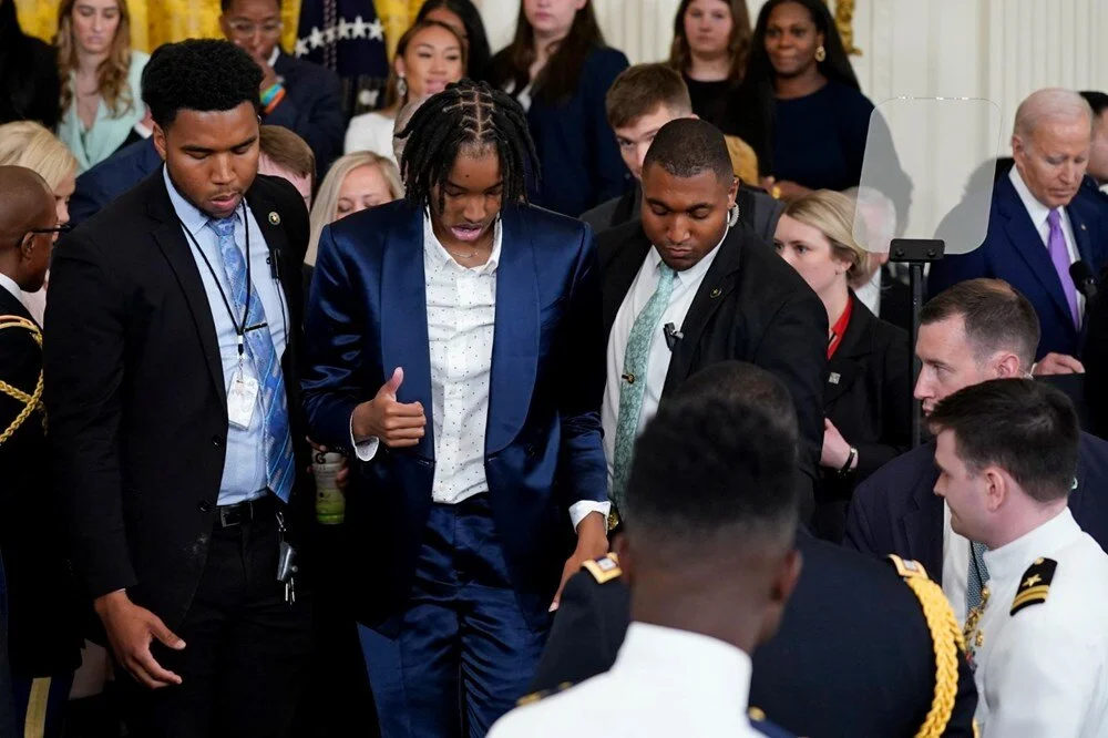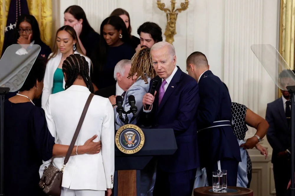 ABD Başkanı Biden, Beyaz Saray'da basketbol oyuncuları ile bir araya geldi. Başkan Biden'ın salonda konuşma yaptığı sırada bir oyuncunun bayılması, salonda korku ve paniğe neden oldu.