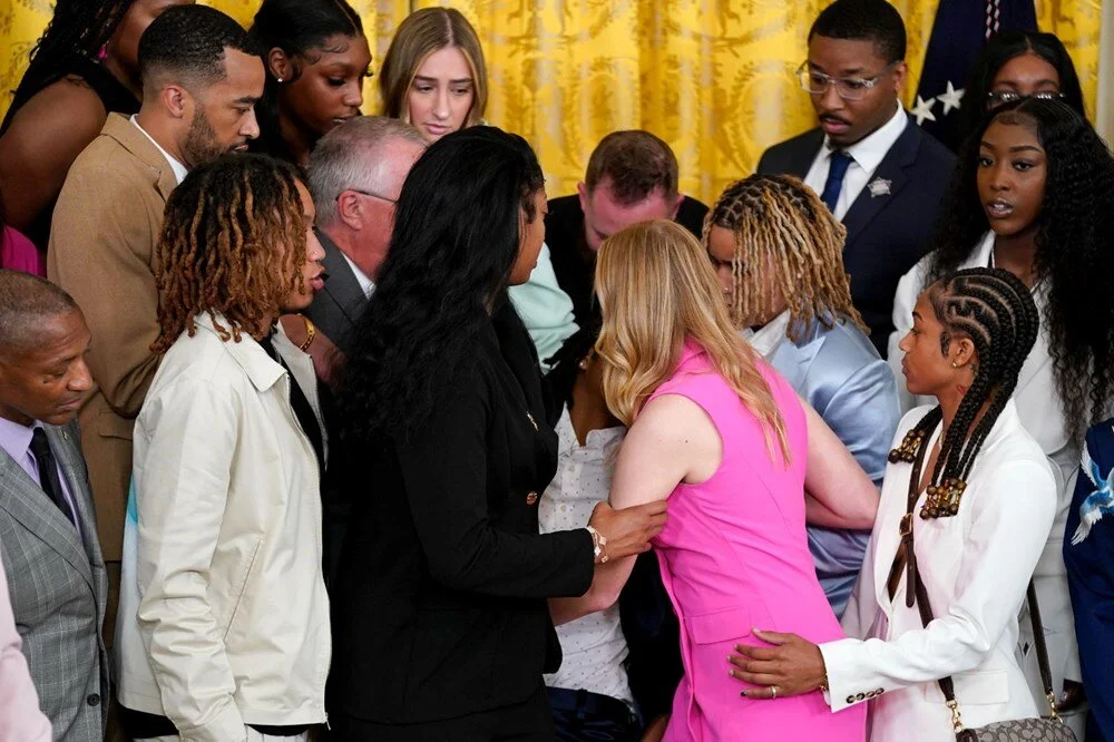 ABD Başkanı Joe Biden ve eşi Jill Biden, Beyaz Saray'da Amerikan Üniversite Sporları Federasyonu (NCAA) şampiyonu Louisiana State Üniversitesi'nin (LSU) kadın basketbol takımı oyuncuları ve Antrenörü Kim Mulkey ile bir araya geldi.