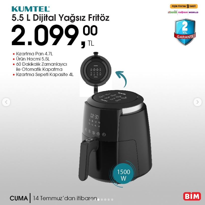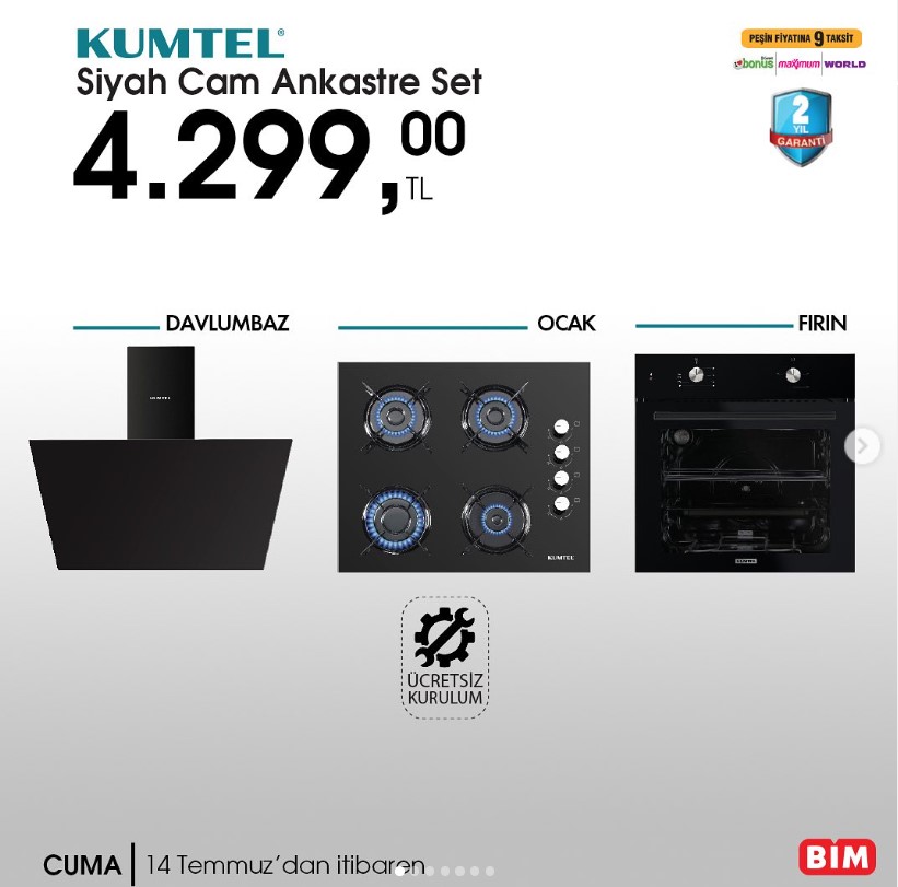 BİM 14 TEMMUZ İNDİRİMLİ ÜRÜNLER LİSTESİ: KUMTEL SİYAH CAM ANKASTRE SET 4 BİN 299 LİRA, KUMTEL AİRFRYER 2 BİN 99 LİRA, XİOMİ ROBOT SÜPÜRGE 11 BİN 499 LİRA.