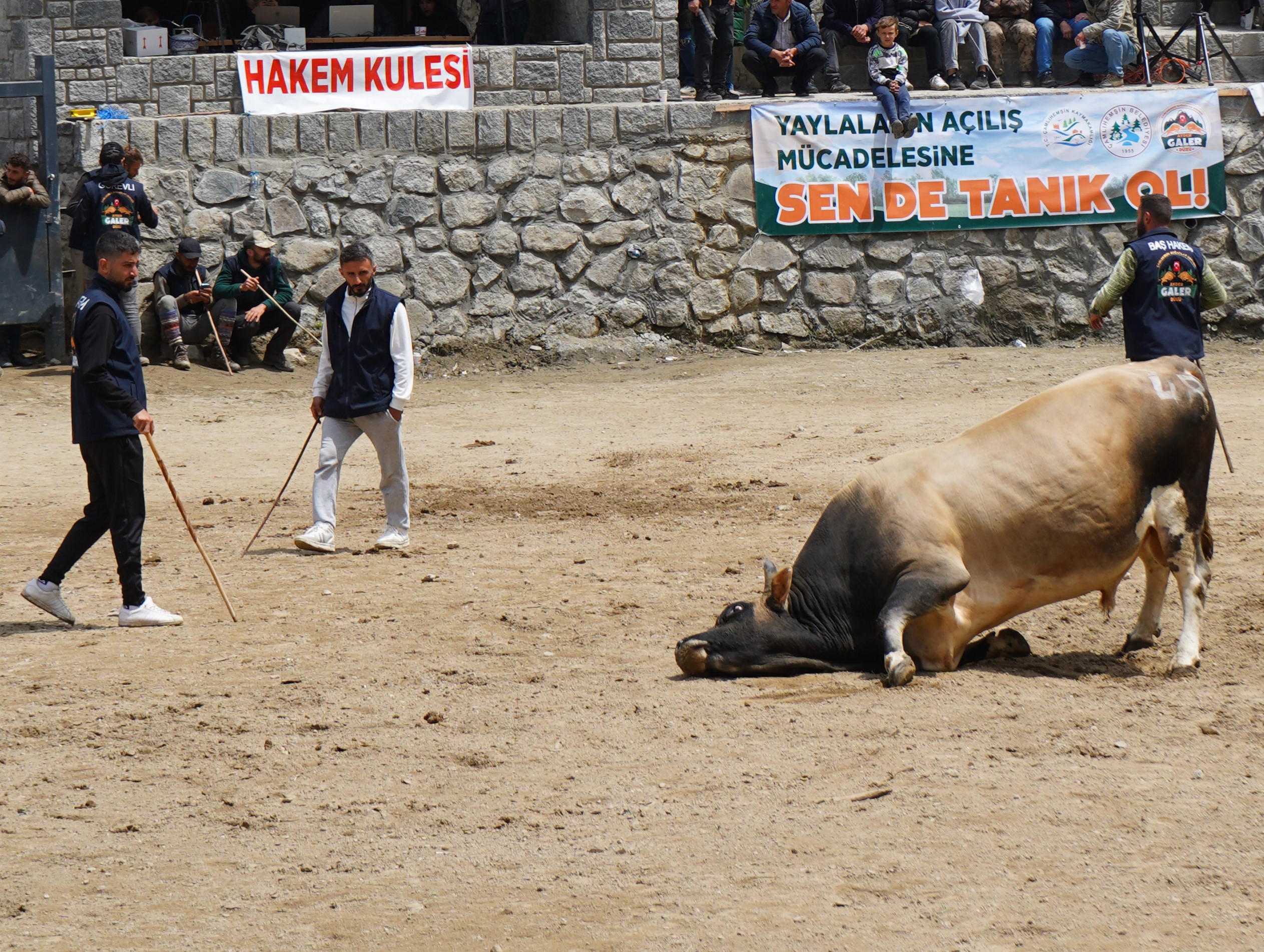 Çamlıhemşin’in Ayder Yaylası Galer Düzü’nde bulunan arenada baş, başaltı, küçük orta ve büyük orta kategorisi olmak üzere 4 kategoride yarışan 60 boğa kıran kırana mücadele etti. Boynuz kontrolleri gerçekleştirilen boğalar sırayla arenaya alındı. Boğa sahiplerinin de büyük heyecan yaşadığı güreşlerde bazı boğalar hemen sonuca giderken, bazı boğalar ise hiç güreşmeden arenayı terk ederek sahibinin hüsrana uğramasına sebep oldu. Güreşlerde dereceye giren boğaların sahiplerine toplam 300 bin lira ödül verildi.