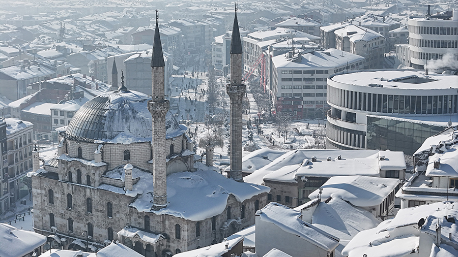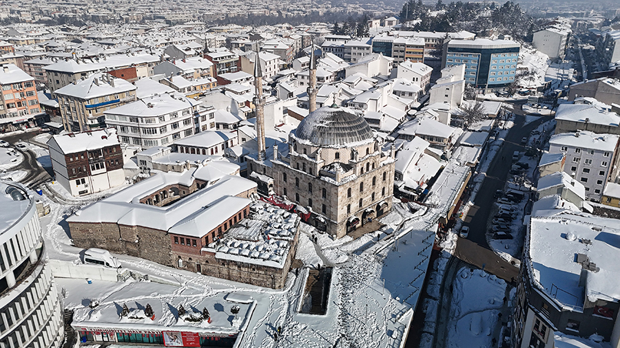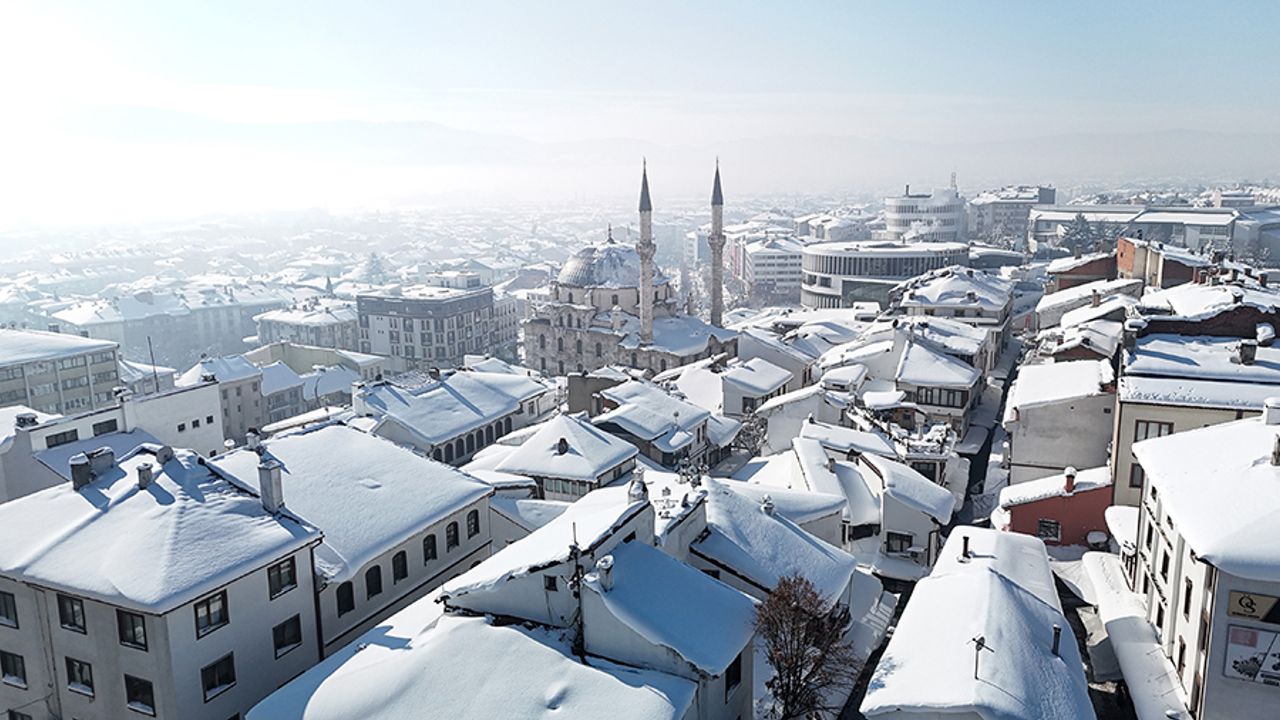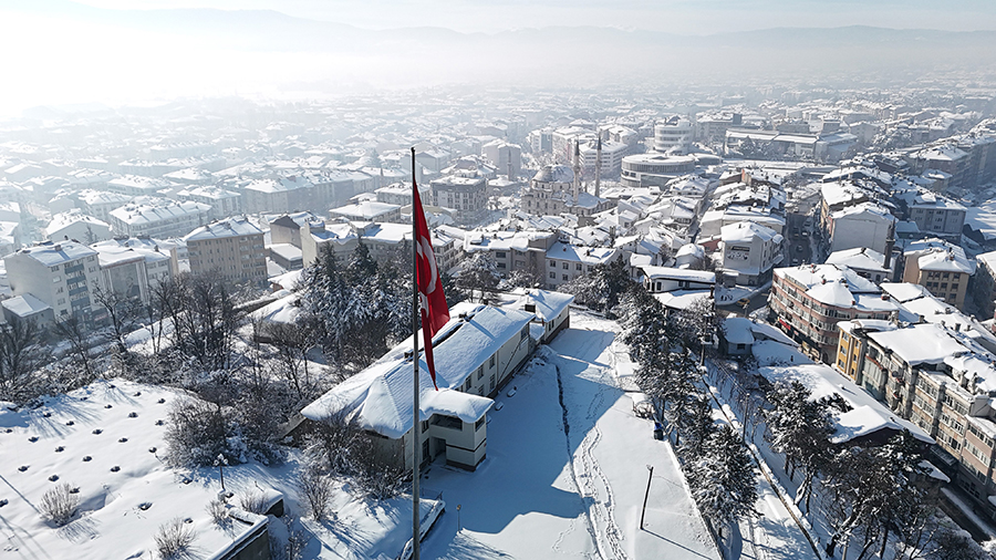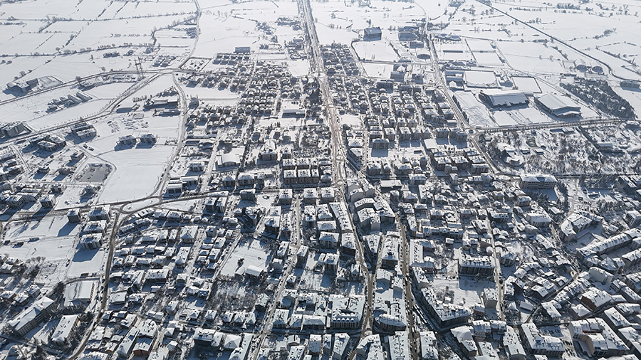Kar yağışının etkisini yitirmesinin ardından Bolu, güne güneşli bir havayla uyandı. Şehrin üzerini kaplayan beyaz örtü, dron ile görüntülendi. Beyaza bürünen şehir merkezi, kartpostallık görüntüler oluşturdu.
