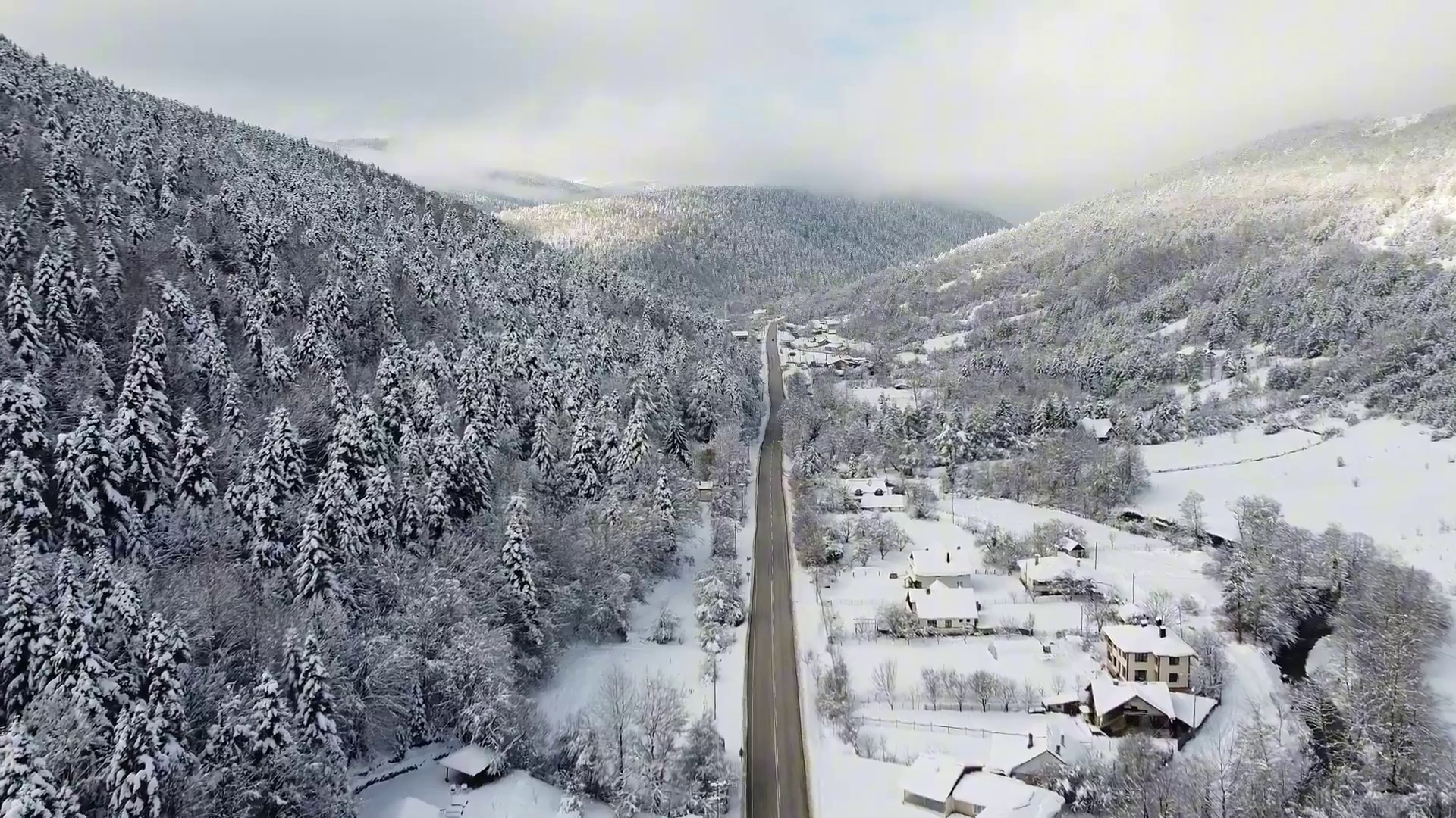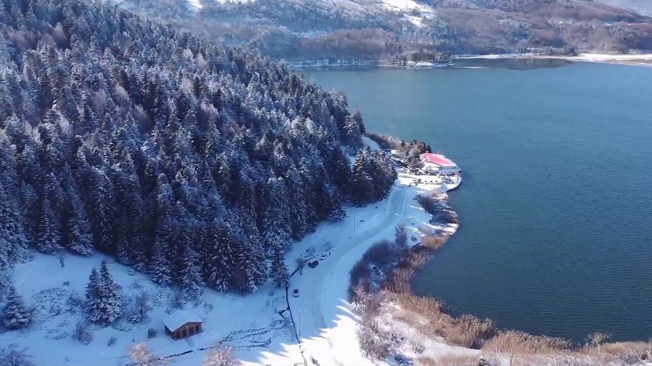Bolu'nun doğal güzellikleri ile ünlü Abant Gölü Milli Parkı'nda kar yağışı sonrası oluşan beyaz güzellik, dronla görüntülendi.
