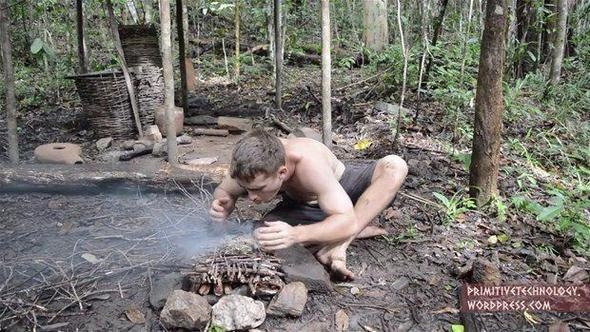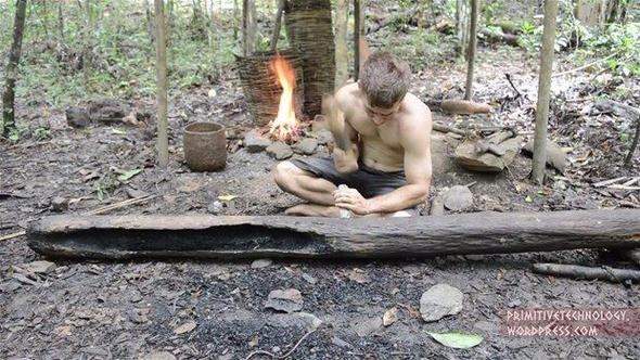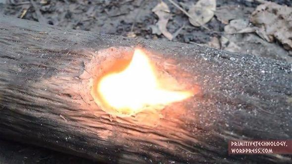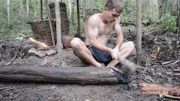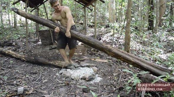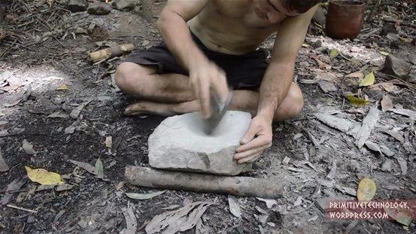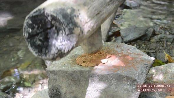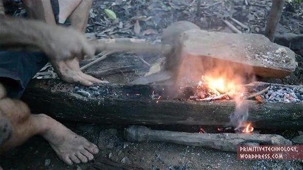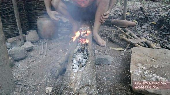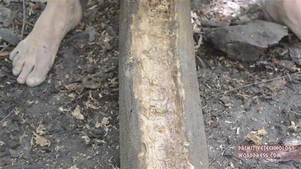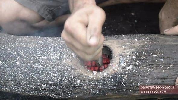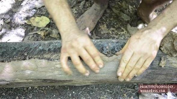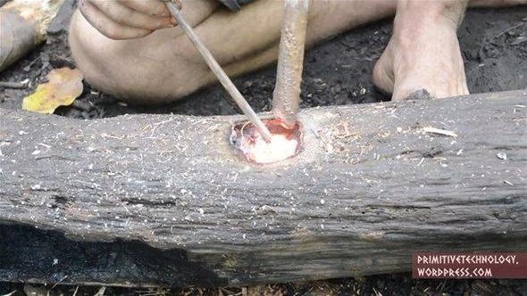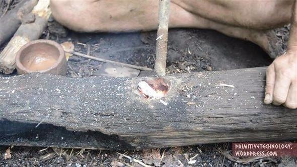 Bağlama noktası olarak kütüğün ortasından bir delik açtı. Yukarıda kömürlerle uyguladığı yöntemi bu kısım içinde uyguladı. Mühürlemek için de aynı şekilde kil kullandı.