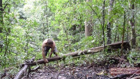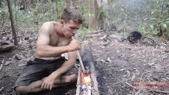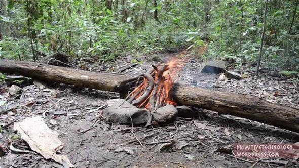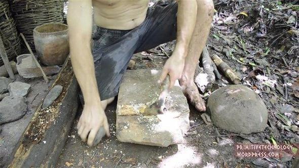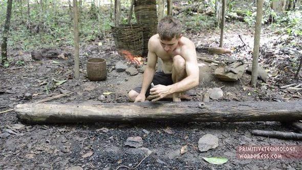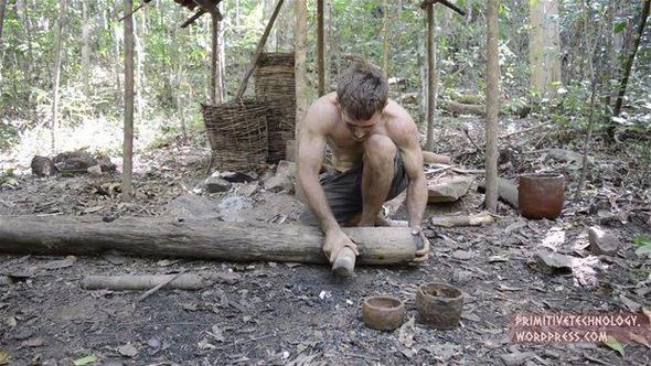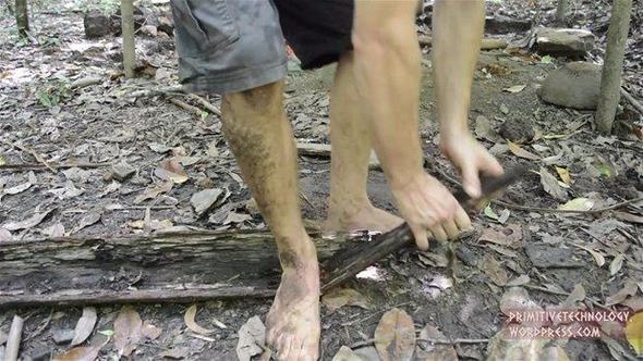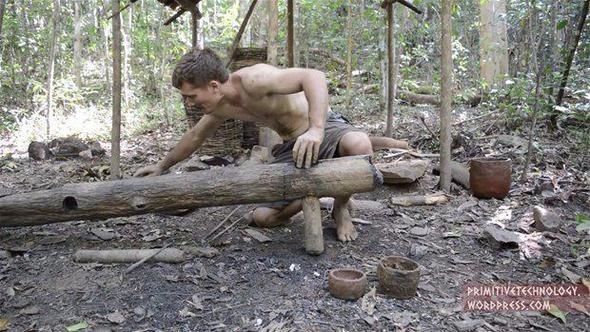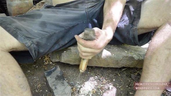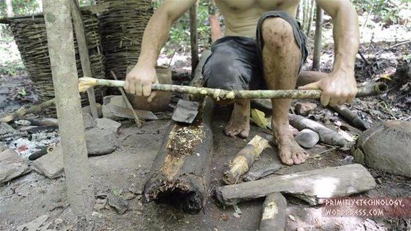 Daha sonra odunda suyun geçmesini gereken kısma oyuk açtı.