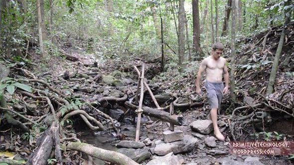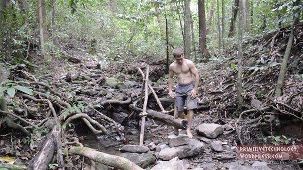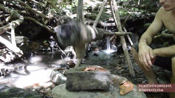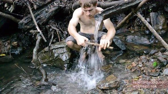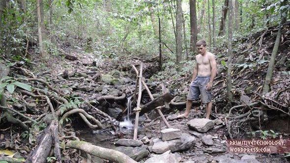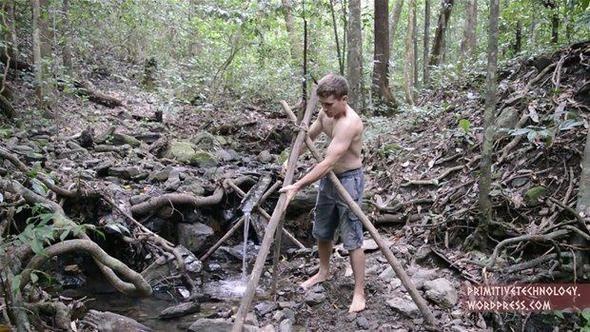 İlk önce doğrudan derenin içinden su püskürten kütükten bir mekanizma yaparak başladı.
