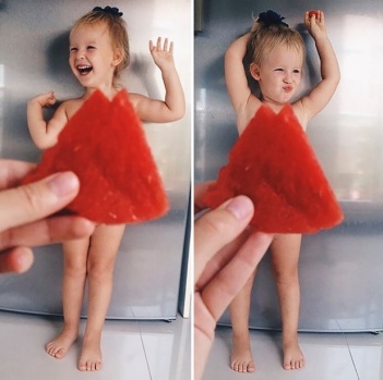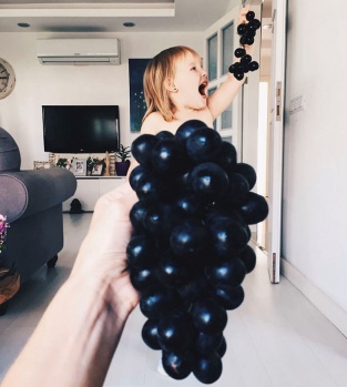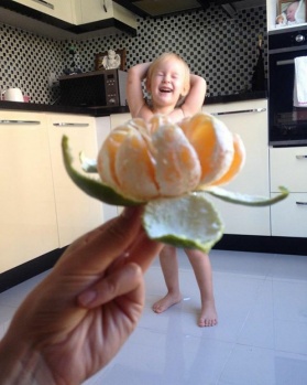 İşte küçük kızını modeli, evdeki meyve sebzeyi de kostümleri yapan annenin objektifinden birbirinden eğlenceli kareler…