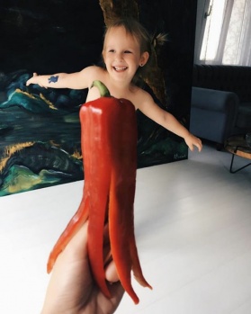 Çoğu ebeveyn çocuklarına yiyeceklerle oyun oynamaması gerektiğini söylese de yağlı boya ressamı Alya Çağlar, üç yaşındaki kızı Stefani ile birlikte yiyeceklerle eğlenceli bir oyun oynuyor.