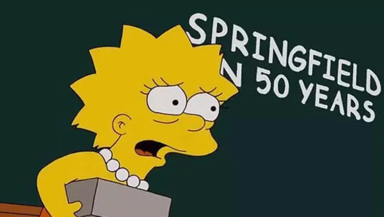 Simpsons dizisinin 20. sezonunun 17. bölümünde, yani bundan tam 10 sene önce Lisa Simpson'dan yaşadığı kasabanın 2059'da nasıl görüneceğine dair bir ödev yapması istenir. Ve Lisa tıpkı Greta gibi bizlere gelecekte karşılaşacağımız çevre sorunlarını ve bunun nasıl felaketlere yol açacağını anlatır.