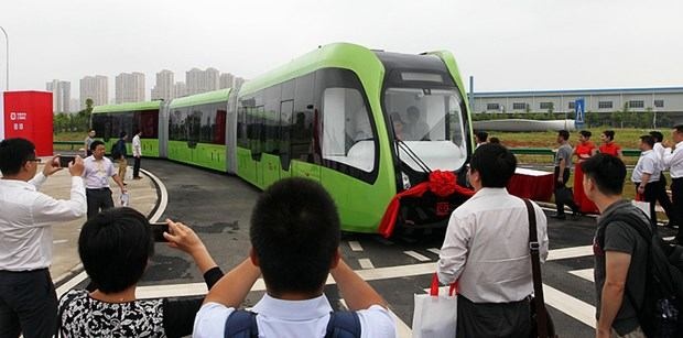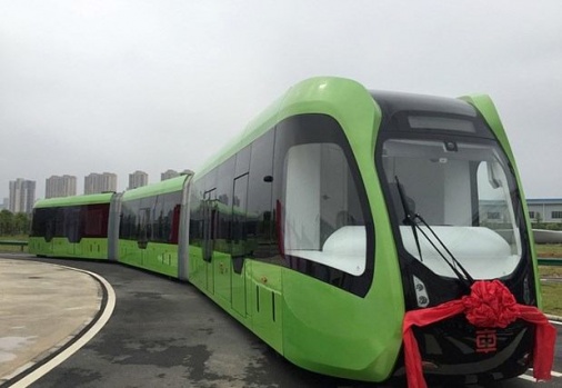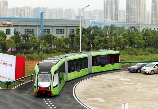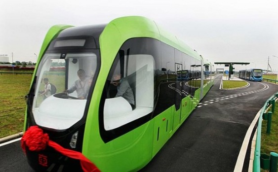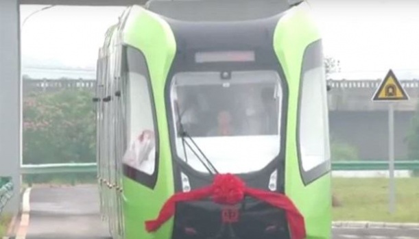 Çin'de sürücüye ihtiyaç duymayan tren - otobüs görücüye çıkarıldı.