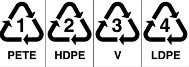 1'in anlamı, PET veya PETE polietilen demektir. Genelde su, iki litrelik alkolsüz içecekler ve yağların konduğu pet şişelerde kullanılır. Cam gibi şeffaftır, zararsızdır.