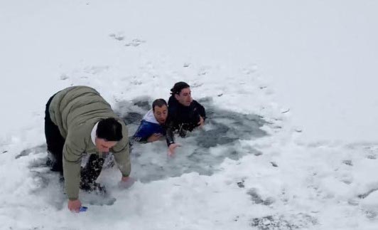 Çaykara ilçesindeki Uzungöl’e giden Tarık Buğra Kaycı (25), Berat Küskün (25) ve Miraç Yazıcı (25) soğuk hava nedeniyle yüzeyi buz tutan Haldizen Deresi üzerinde zıplayarak video çekmek istedi. Zıplayan gruba kısa süre sonra bir arkadaşları da dahil oldu. Ancak bu sırada buz kütlesi kırıldı, 4 kişi bir anda suya düştü. Arkadaş grubu kendi imkanlarıyla sudan çıktı. O anlar, kıyıda bulunan arkadaşları tarafından cep telefonu kamerasıyla kayda alındı. Görüntüler, paylaşıldığı sanal medyada izleyenleri gülümsetti.