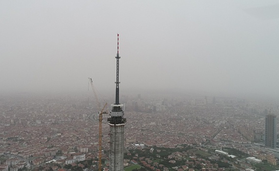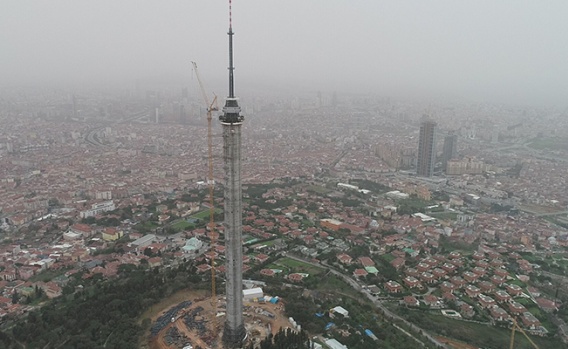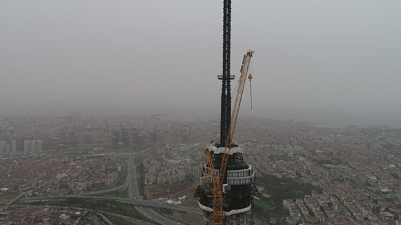 Görüntülerde kulenin son parçası olan antenin yapıldığı ve sona gelindiği görülüyor. Dev kule ile İstanbul manzarası eşsiz bir güzellik ortaya koyarken, 16 parçadan oluşan antenin yapılması ile kulenin yüksekliği 365 metre olacak. Kule bu yüksekliğe ulaştığında Paris'teki Eyfel Kulesi'nden daha yüksek olacak.