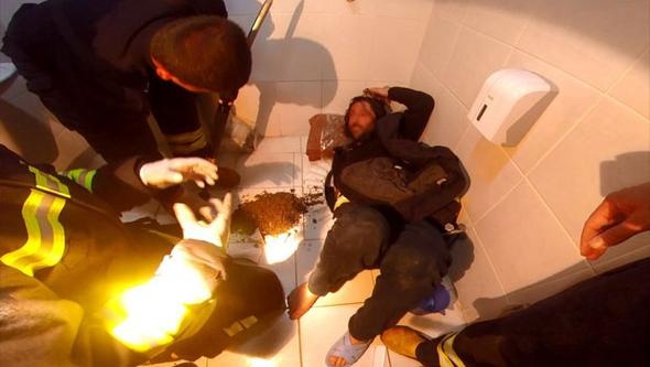 İhbar üzerine hastaneye gelen itfaiye ekipleri yaklaşık 1 saatlik çalışma sonucu tuvaleti kırarak genç adamın kolunu sıkıştığı yerden kurtardı.