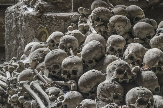 İtalya'nın Napoli kentinde yer altına inşa edilen gizli The Neapolitan Cult of the Dead mezarlığında çekilen bu görüntüler dehşet saçıyor.