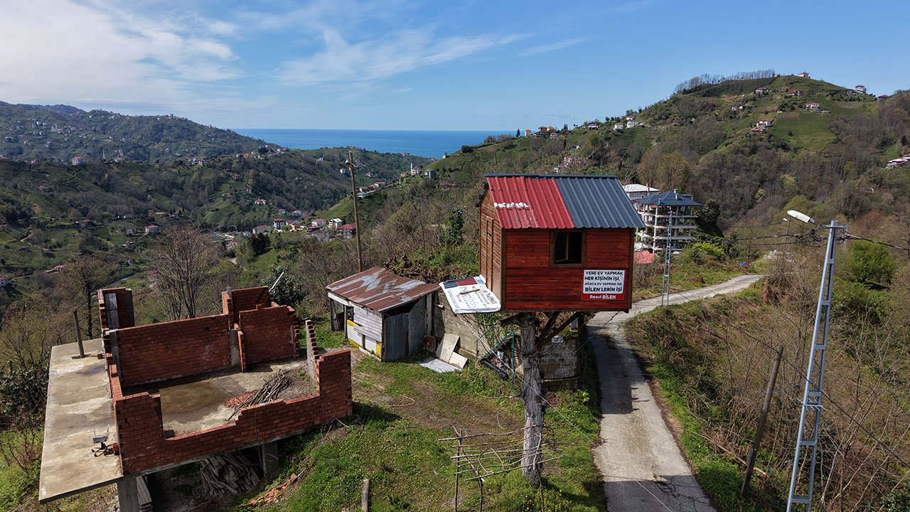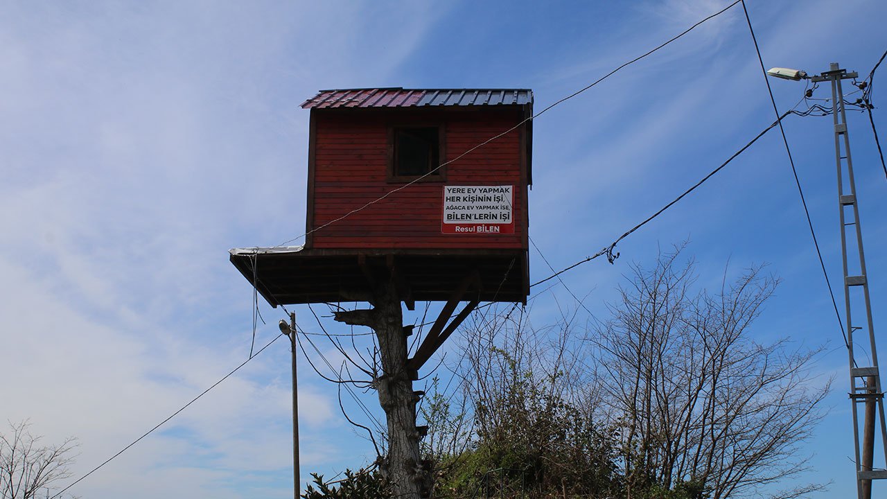 Eğimli ve zor coğrafyası ile dikkat çeken Doğu Karadeniz'de, ağaç üzerine inşa edilen ahşap evler ilgi odağı oluyor. Rize'de doğup büyüyen ve İstanbul'da yaşayan Resul Bilen, çocukluk hayalini gerçekleştirmek için memleketindeki dede yadigarı ceviz ağacının zirvesine ahşap ev yapmaya karar verdi. 10 yaşından beri ağaç ev yapma hayali kuran Bilen, çevresindekilerin eleştirilerine aldırış etmeden tek başına evin inşasına başladı. Bahçede kurumaya başlayan ceviz ağacının üzerine elektrik tellerinin hizasını aşmayacak şekilde planlanan yapı, 7 metre yüksekliğe inşa edildi. 9 metrekarelik odası ve 3 metrekarelik balkonu bulunan ahşap ev, kısa sürede köyün sembolü haline geldi. Yoldan geçenler, anı fotoğrafı çektirirken; ahşap evin dışına asılan 'Yere ev yapmak er kişinin işi, ağaca ev yapmak ise Bilenler'in işi' yazılı tabela görenleri tebessüm ettiriyor.