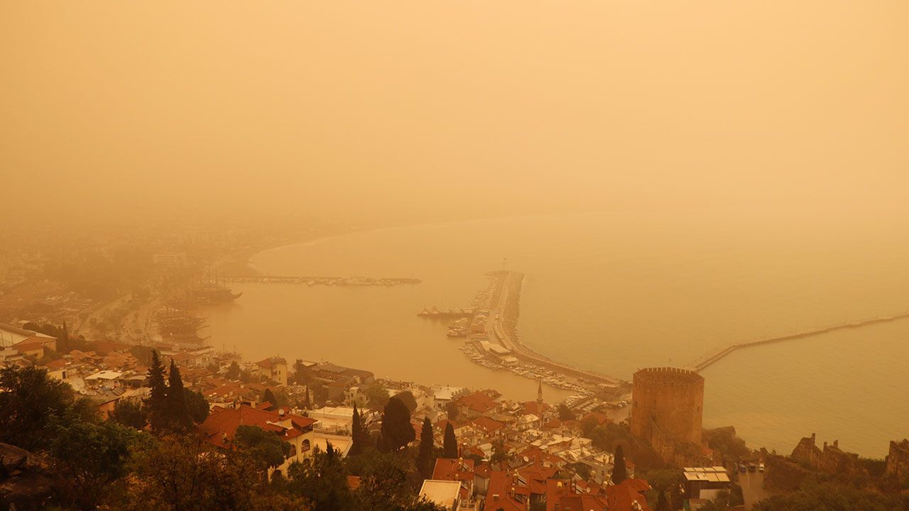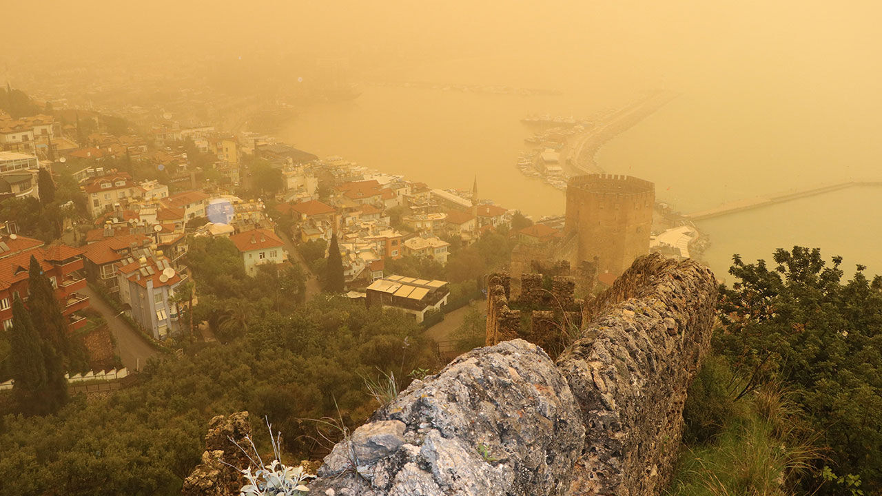 Alanya'da sabah saatlerinde çöl tozunun etkisiyle gökyüzünün rengi değişti. İlçede yağmur da etkili olunca çöl tozu çamura dönüştü. Araçların üzeri çamur içerisinde kalırken, sürücüler zor anlar yaşadı. Alanya Meteoroloji Müdürlüğü'nden alınan bilgilere göre; çöl tozunun ilçede sadece bugün etkili olacağı öğrenildi. Manavgat ilçesinde de çöl tozu ile birlikte yağmur ve kısa süreli dolu etkisini gösterdi. Antik Side bölgesindeki yürüyüş yollarında çöl tozu, yağmur ve dolunun etkisiyle çamurlu su birikintileri oluştu. (