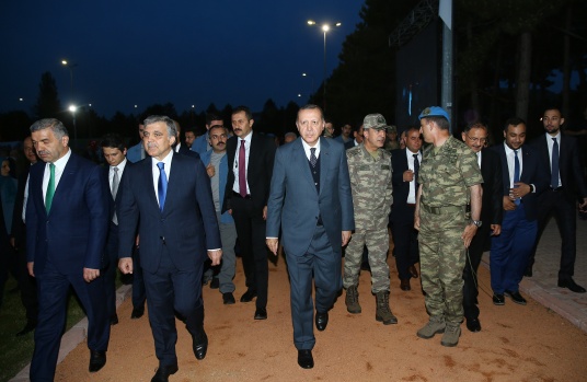 Erkilet Havalimanı’nda karşılanan Cumhurbaşkanı Erdoğan için, gündüz saatlerinden itibaren havalimanı çevresinde geniş güvenlik önlemleri alındı. Erdoğan, kara yoluyla Zincidere 1‘inci Komando Tugayı’na gitti.