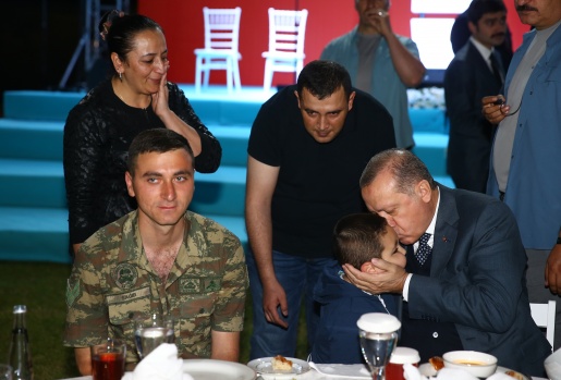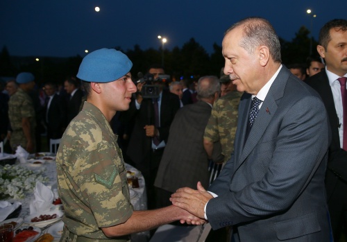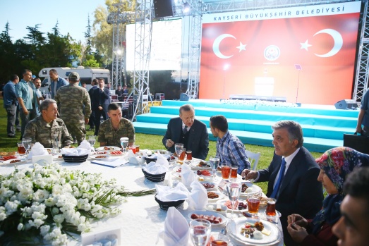 Cumhurbaşkanı Recep Tayyip Erdoğan, 11. Cumhurbaşkanı Abdullah Gül ve Genelkurmay Başkanı Orgeneral Hulusi Akar, Kayseri Büyükşehir Belediyesi tarafından 1’inci Komando Tugayı’nda verilen iftara katıldı.