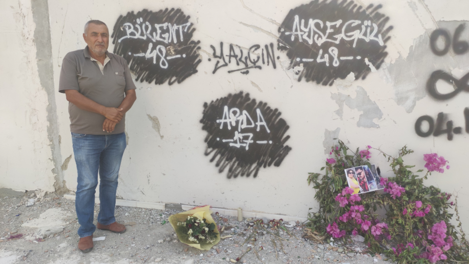 Tutar Yapı’nın enkazında hayatını kaybeden 3 yakını için Ali Çay, 3 çiçek bıraktı.