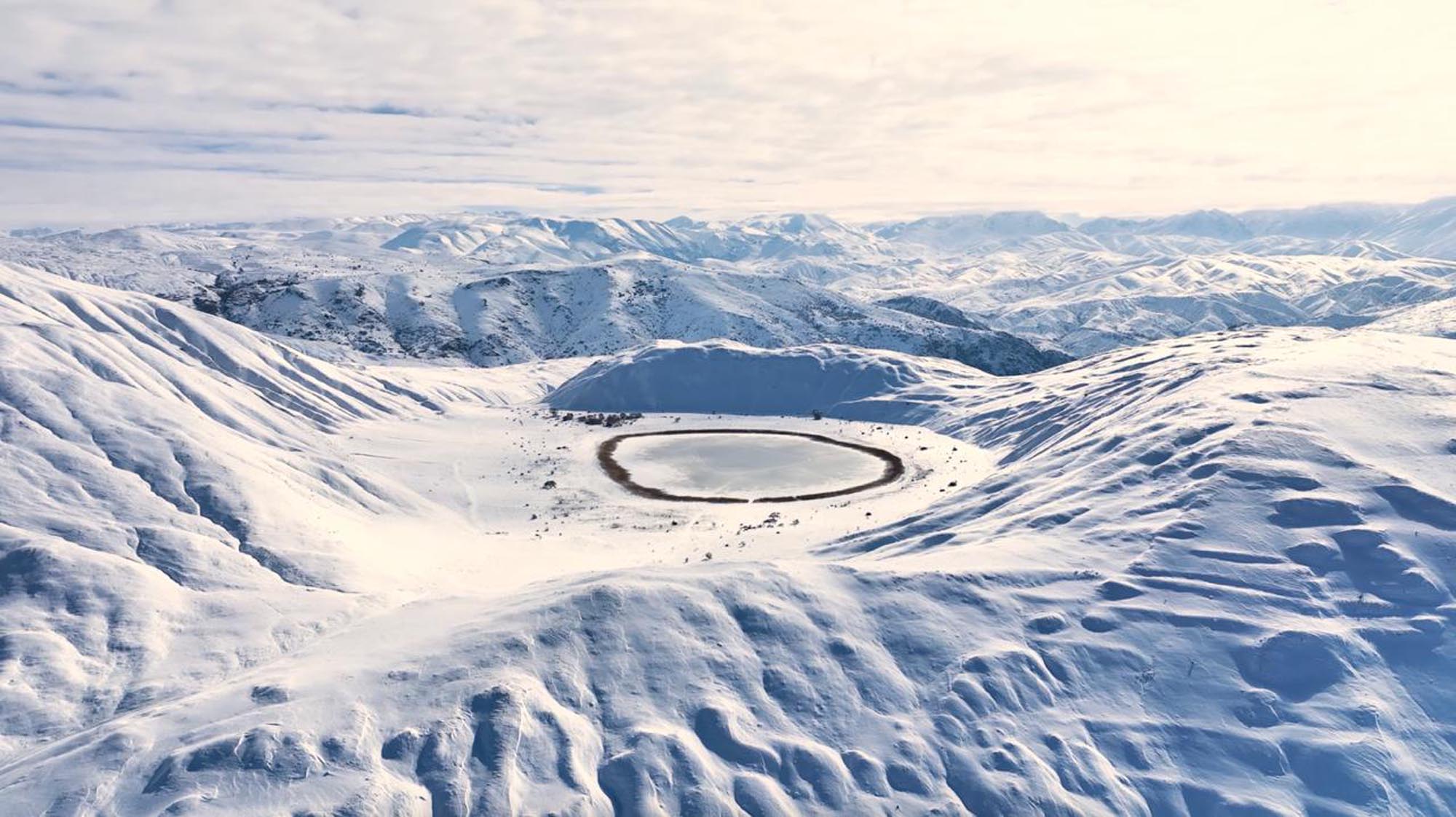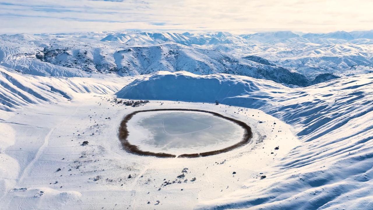 Kış mevsiminin sert geçtiği Erzincan’da, dairesel formuyla dikkat çeken tabiat harikası gölün yüzeyi buzla kaplanırken, ortaya çıkan kristal görünüm izleyenleri hayran bıraktı.