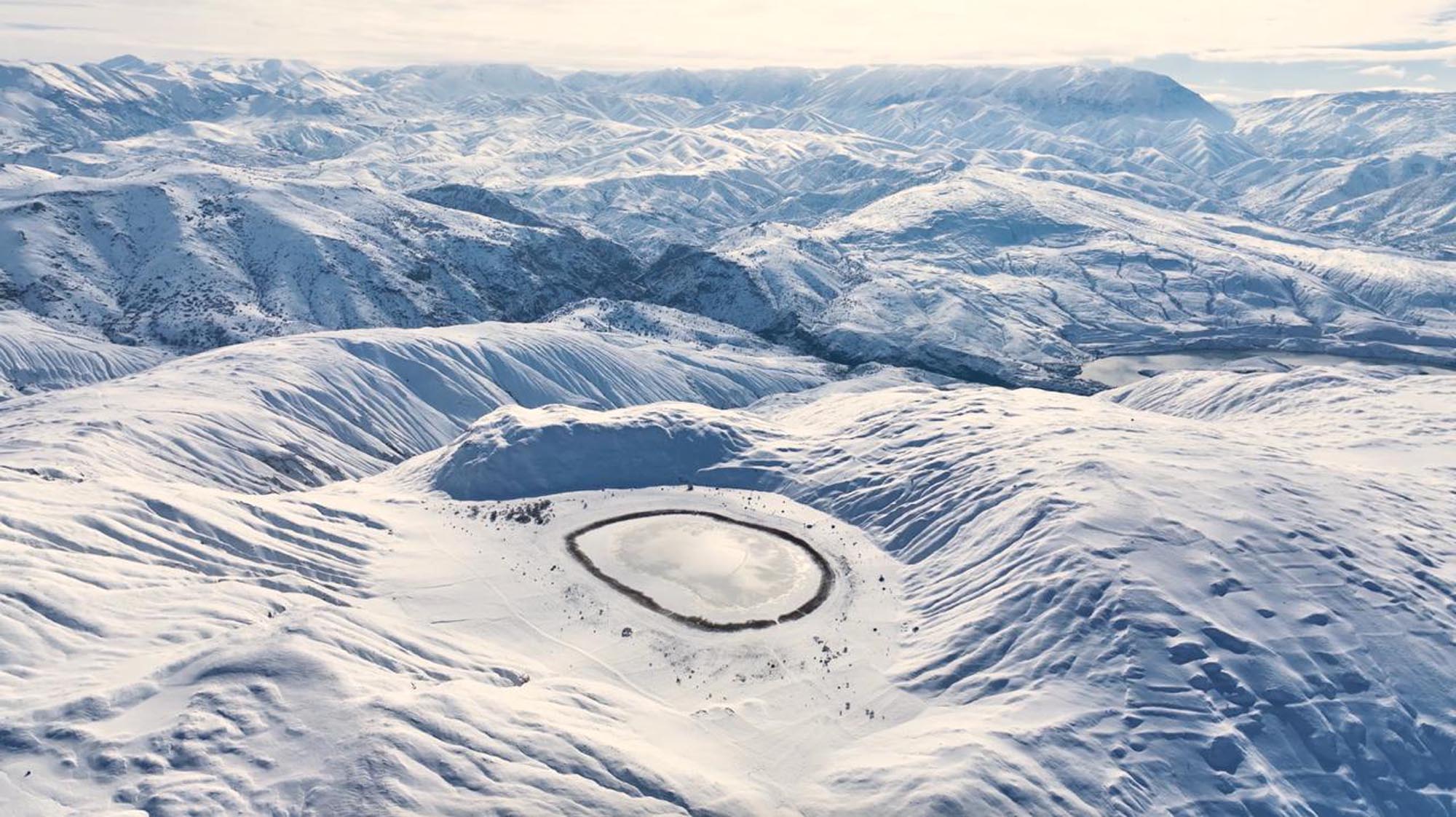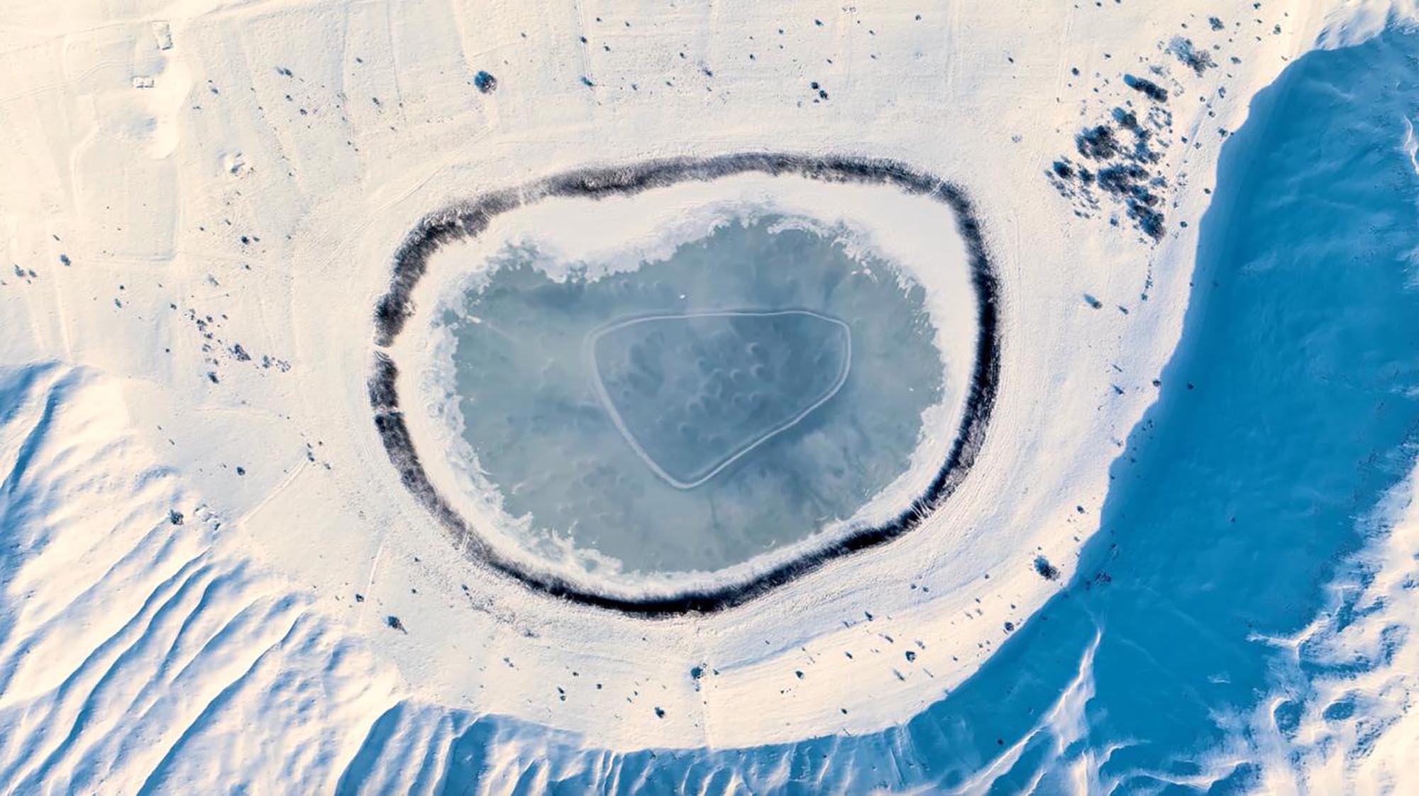 Gökyüzünden dairesel bir nazar boncuğunu andıran gölün bu hali, kış turizmi ve doğa fotoğrafçıları için eşsiz bir görsel şölen sundu.