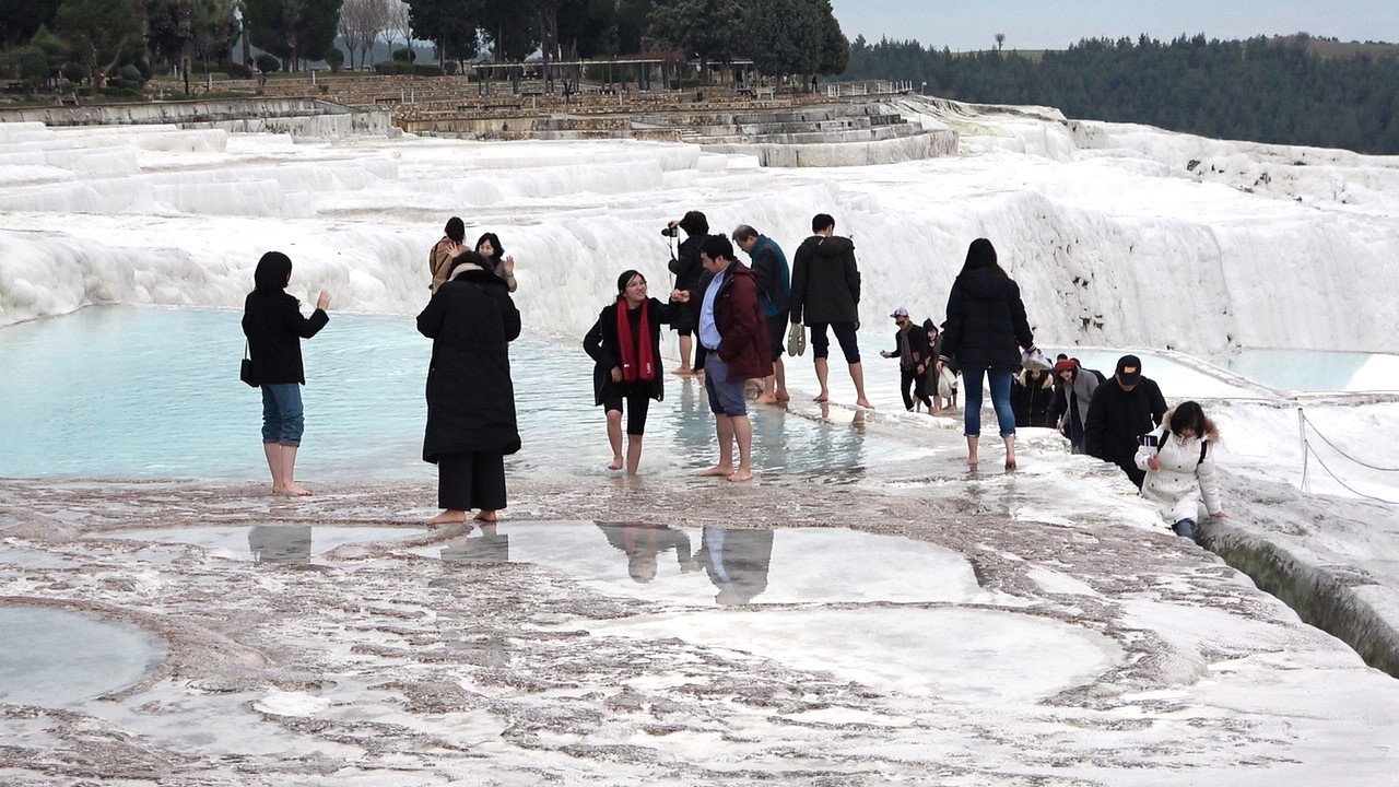 Genellikle günü birlik gelindiğini ifade eden Pamukkale Turizm Derneği eski Başkanı Nurettin Koçak, “Burası pandemiye ve kış olmasına rağmen yoğun misafir ağırladı. Soğuk havaya rağmen buranın suyu 36 derece sıcaklığında ve vücut ısısına eşit olduğundan dolayı sağlığa da faydalı. Tabi 100 kilometre ilerde bulunan Karahayıt suları da şifalı olduğu için ziyaretçi sayısı çok oluyor. Burası tarihi, coğrafi ve birçok güzel özellikleriyle adından söz ettiren önemli bir yerdir. Avrupa'da bulunanlar daha çok Pamukkale’ye günü birlik gelip gidiyor. Uzak Doğu'dan gelen çok fazla misafir oluyor. Pakistan ve Hindistan gibi Uzak Doğu Ülkelerinden gelenlerin sayısı çok fazla. Burası günden güne şenlenecek ve bunun işaretini de veriyor. Nisan ayında büyük bir patlamada bekliyoruz” dedi.