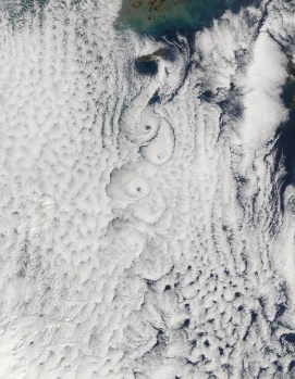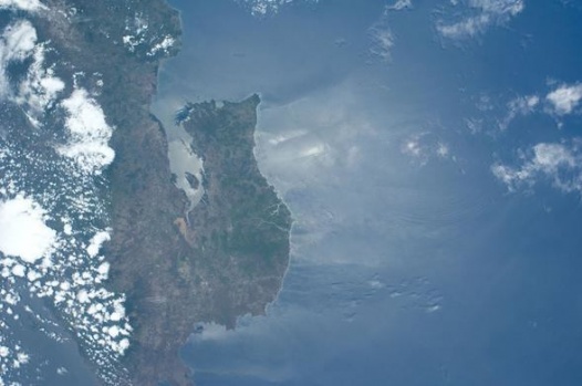 Yoğun bulutlardan zor görünüyor olsa da Güney Kore'nin minik adası Jeju-do