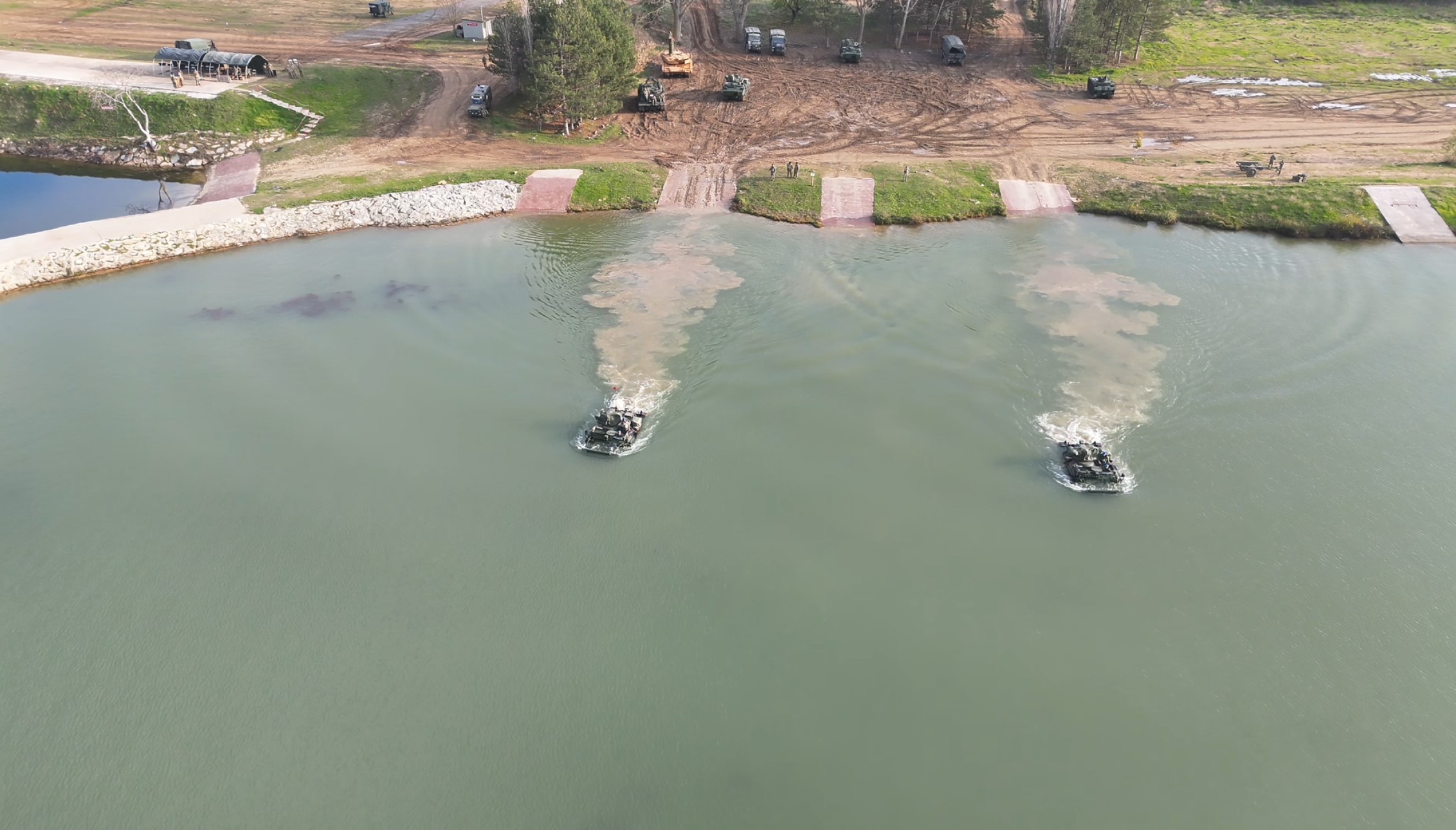 Zırhlı personel taşıyıcılar ise amfibik yeteneklerini sergileyerek su yüzeyinde yüzerek veya derinlikten sürüş yaparak karşı kıyıya intikal etti.