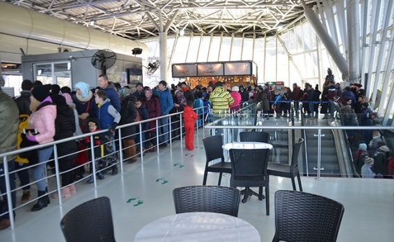 Son iki gündür yaşanan şiddetli fırtına ve tipi yüzünden dağ yolunun kapanmasından endişe eden tatilciler, araçlarını şehir merkezindeki otoparklara bırakıp, dağa teleferik ile çıkmayı tercih edince gidiş ve gelişlerde yoğunluk yaşandı.