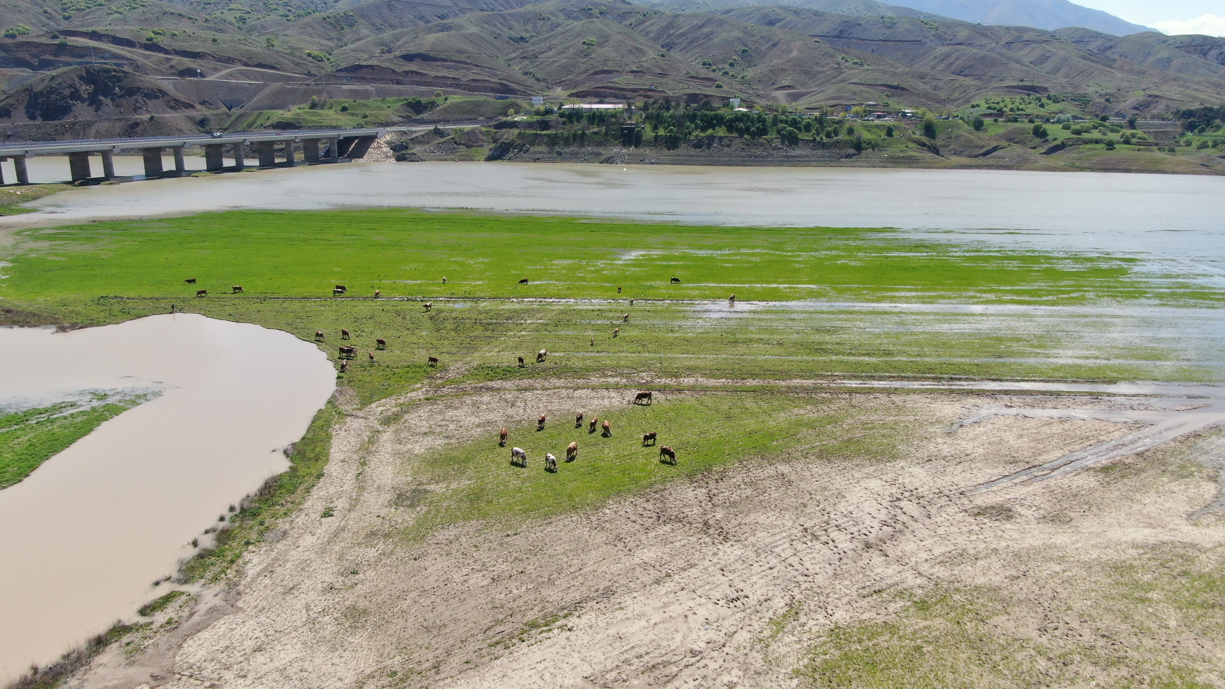 Elazığ'da etkili olan kuraklık sonrası Keban Baraj Gölü Havzasıyla onu besleyen Murat Nehri'nde de su seviyesi düşmüştü. Bölgeden 3.5 ay sonra gelen yeni görüntüler, görenleri umutlandırdı..