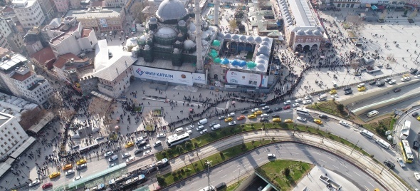 Görüntülerde kuyruk bilet gişesinden Galata Köprüsü`ne kadar ulaşıyor.