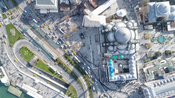 Bariyerlerle düzgün olması sağlanan bilet kuyruğu havadan görüntülendi.