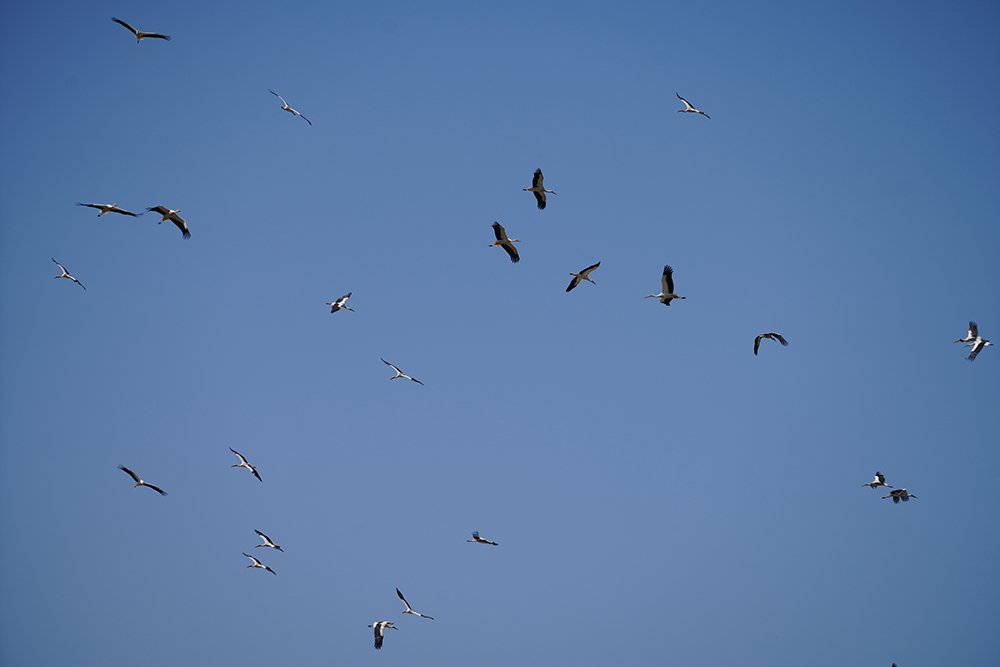 Özellikle bu dönemde sürü halinde görülen leylekler, zaman zaman gökyüzünde toplu halde süzüldükten sonra beslenmek için alana iniyor. Tesis çevresinde bulunan martılar da aynı hareketliliğe eşlik ediyor. Zaman zaman aynı noktada bir araya gelen leylekler ve martılar, doğadaki uyumu yansıtan görüntüler ortaya çıkarıyor.