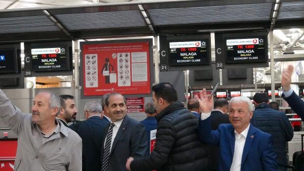 Bolu, Çanakkale, Erzincan, İstanbul ve Trabzon'dan toplam 50 muhtarın yer aldığı ilk kafile Atatürk Havalimanı Dış Hatlar Terminali'nde topluca poz verdi. Çoğu yurt dışına ilk kez çıkan muhtarlar heyecanlıydı. Muhtarlar bu gezinin kendilerine kültürel ve şehircilik anlamında çok şey katacağını ifade ettiler. Zeytinburnu Yeşiltepe Mahalle Muhtarı Nadiye Polat, 53 yaşında olduğunu, ilk defa yurt dışına çıkacağını söyledi. Polat, " Muhtarların yurt dışına çıkması çok güzel bir imkan. Yurt dışını görmemizi sağlayan Sayın Cumhurbaşkanımızın düşünceleri ve muhtarlarımıza olanak sağlanması çok önemli bir olay" dedi. Sultanbeyli Hasanpaşa Mahalle Muhtarı Orhan Bahadır, Endülüs'teki Osmanlı izlerini ve eserlerini göreceği için çok heyecanlı olduğunu ifade ederken muhtarların gezilerde elde ettiği tecrübelerini mahallelerine aktarabileceğini belirtti. Kudüs'ü de görmeyi çok istediğini anlatan Bahadır, şehircilik açısından Hollanda ve Almanya'yı da görmek istediğini kaydetti. Erzincan'dan gelen muhtar Hamza Alkan'da yurt dışına ilk kez çıkacağını ve Erzincan'a dönüşte geziyle ilgili tecrübelerini mahalleye yansıtmaya çalışacağını söyledi. Trabzon Yomra Özdil Mahalle Muhtarı Barış Hatipoğlu ise "Bizim için gurur verici, gidip göreceğiz." diye konuştu.