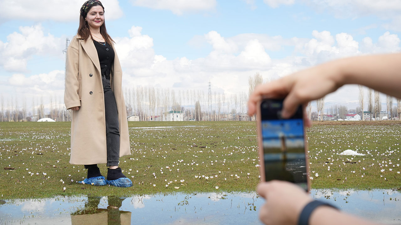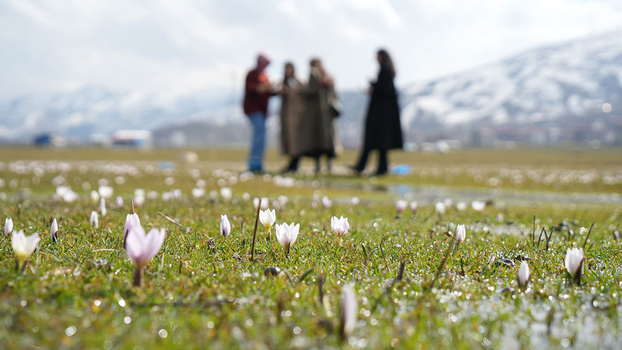 Muş Ovası genelinde, özellikle karla kaplı dağ eteklerinde açan çiğdemler, beyaz örtüyle bütünleşerek görsel bir şölen sundu. Zarif yapıları ve canlı renkleriyle dikkat çeken çiğdem çiçekleri, doğanın uyanışını simgelerken ortaya güzel manzaralar çıktı.