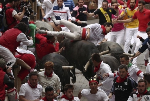 İspanya’nın kuzeyinde bulunan Pamplona bölgesinde yapılan ünlü San Fermin festivali kapsamında boğa koşusu tehlikeli anlara sahne oldu.