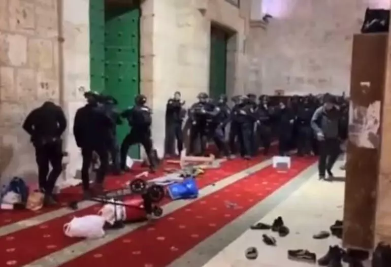 Onlarca İsrailli yerleşimci Perşembe sabahı İsrail polisinin koruması altında Mescid-i Aksa'nın avlularına girdi. Fanatik Yahudilerin Pesah Bayramı nedeniyle baskın düzenleme ve kurban kesme çağrılarının ardından teravih namazı sonrası Filistinliler, Mescid-i Aksa’nın içindeki Kıble Mescidi'ne sığınmıştı. Filistinliler İsrail polisinin içeri girmesini engellemek için Kıble Mescidi’nin kapılarını kapatmış, mescidin etrafını ablukaya alan İsrail polisi ise Filistinlileri dışarı çıkarmak için camları kırıp içeriye göz yaşartıcı gaz bombası atmıştı.