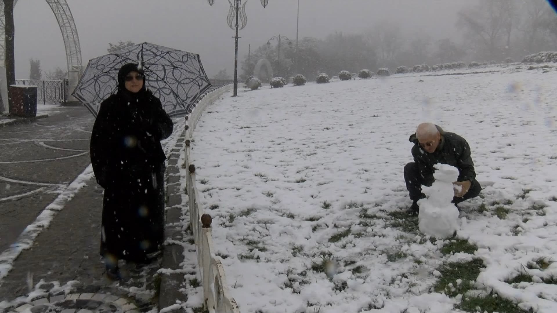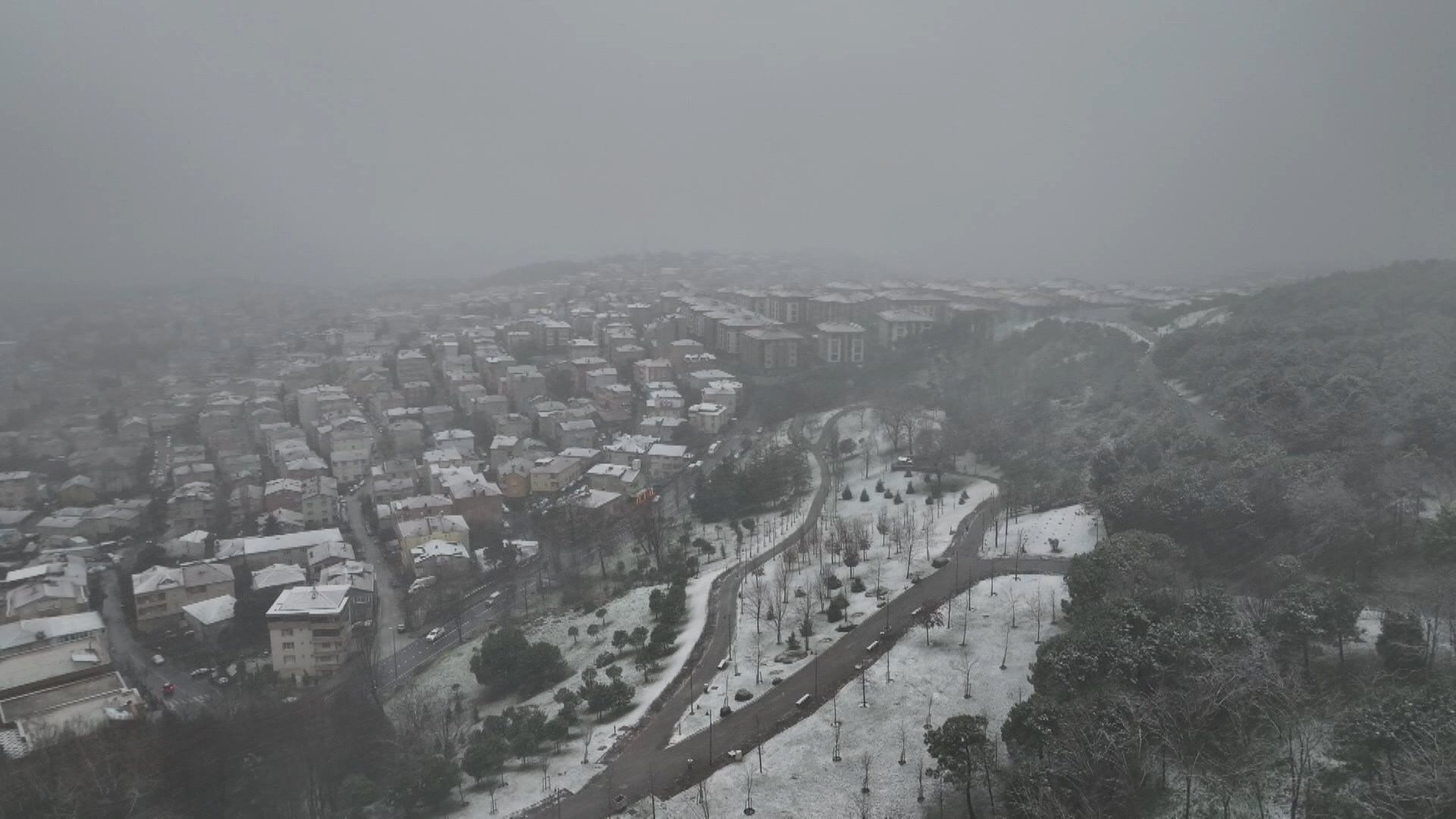Kimileri kardan adam yaparken, kimileri de kızakla kaydı. Gezmek için Çamlıca’ya gelenler ise bol bol fotoğraf çekti. Kar yağışı, Çamlıca Tepesi’nde dron ile görüntülendi.