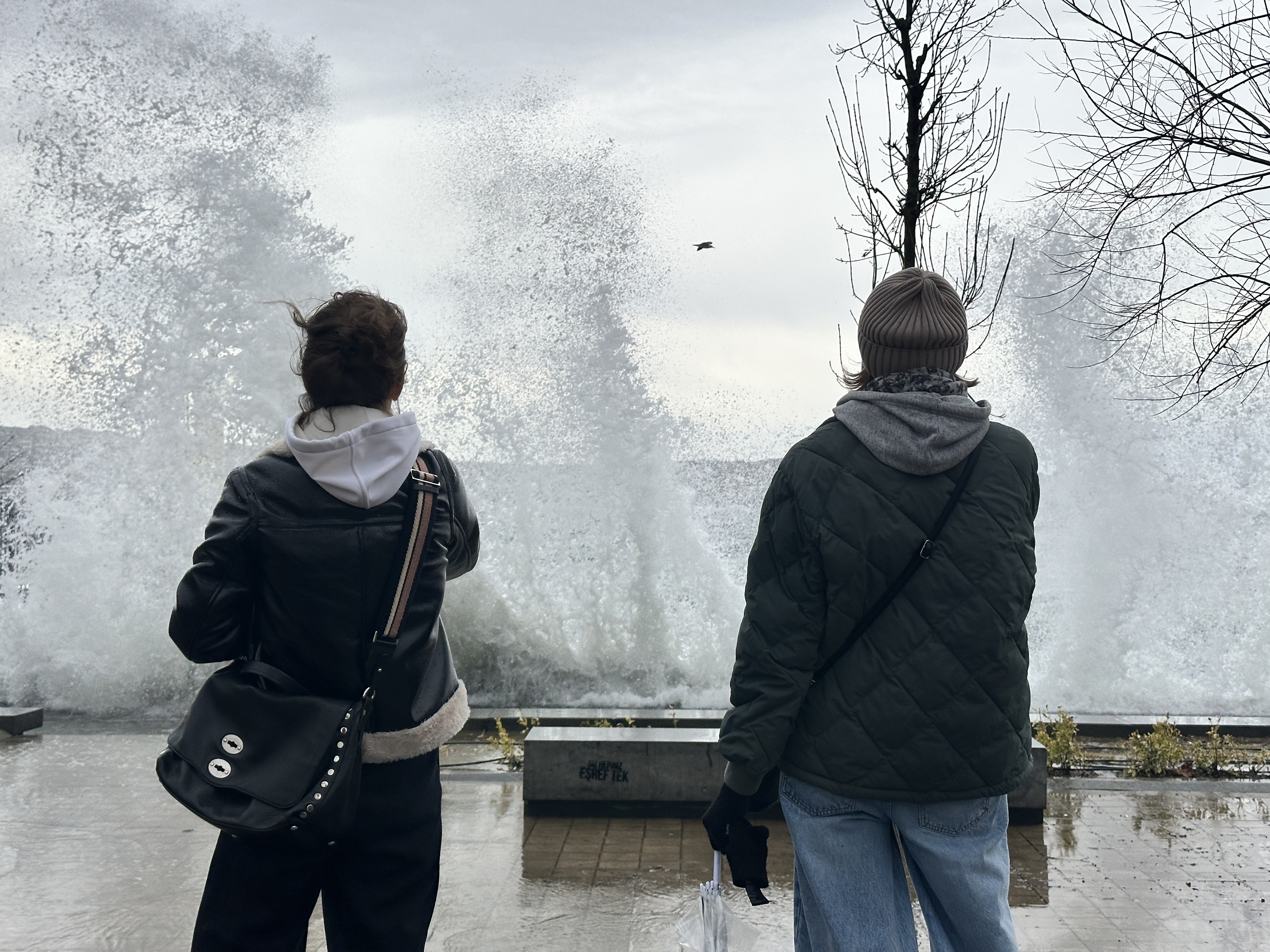 Sahilde bulunan bazı vatandaşlar ise fırtınaya aldırış etmedi. Bazıları ise fotoğraf çekmeye çalışırken dalgaların aniden yükselmesi sonucu ıslandı.