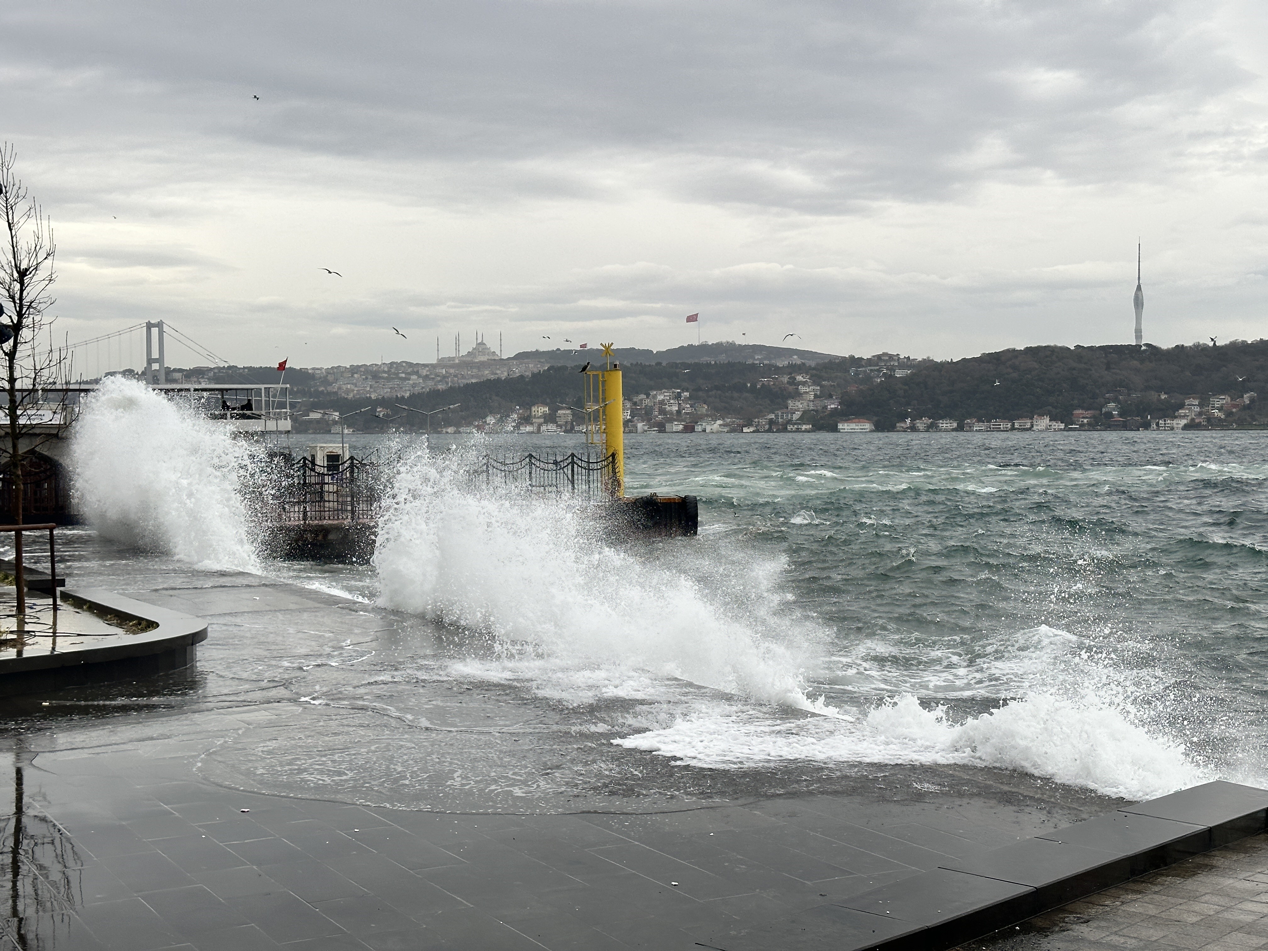 Meteorolojinin yaptığı uyarıların ardından İstanbul'da akşam saatlerinde fırtına etkili olmaya başladı. Sabah saatlerinde şiddetini artıran rüzgar nedeniyle denizde dev dalgalar oluştu.