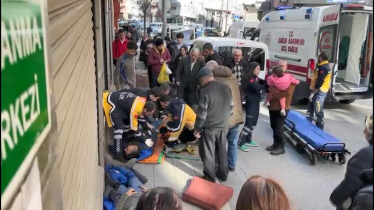 Tamiratın devam ettiği sırada 2 teknisyen ellerindeki klima malzemeleriyle birlikte yaklaşık 3 metreden aşağı düştü. Teknisyenler kucağındaki bebeğiyle markete girmek isteyen kadının üstüne düştü. Kadın ve iki teknisyen yaralandı.