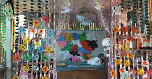 Coconut Okulu'nda atıklar boşa gitmiyor. Çünkü öğretmeler ve öğrenciler çöpleri dönüştürmek için her zaman farklı yollar arıyor. Bu odada herhangi bir plastik şişenin hiçbir parçası boşa gitmiyor. Bunun yerine süslemeye dönüştürülüyor.