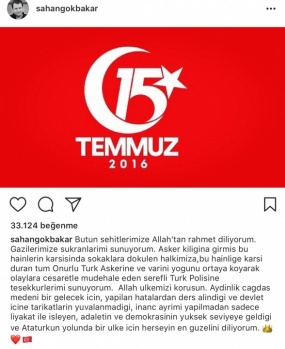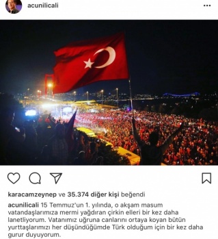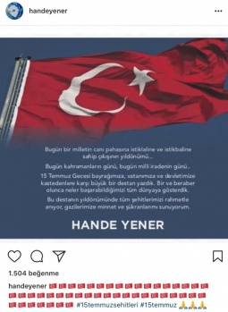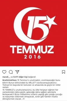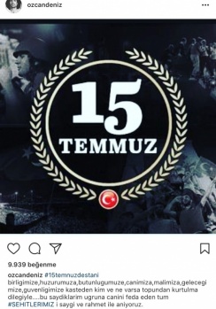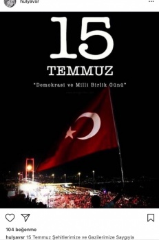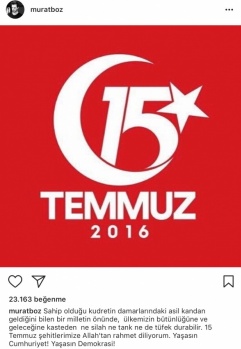 Ünlü isimlerden 15 Temmuz mesajları gelmeye devam ediyor. Darbe girişiminin birinci yıl dönümünde ünlüler de sosyal medya hesaplarından 15 Temmuz mesajları paylaştılar.
